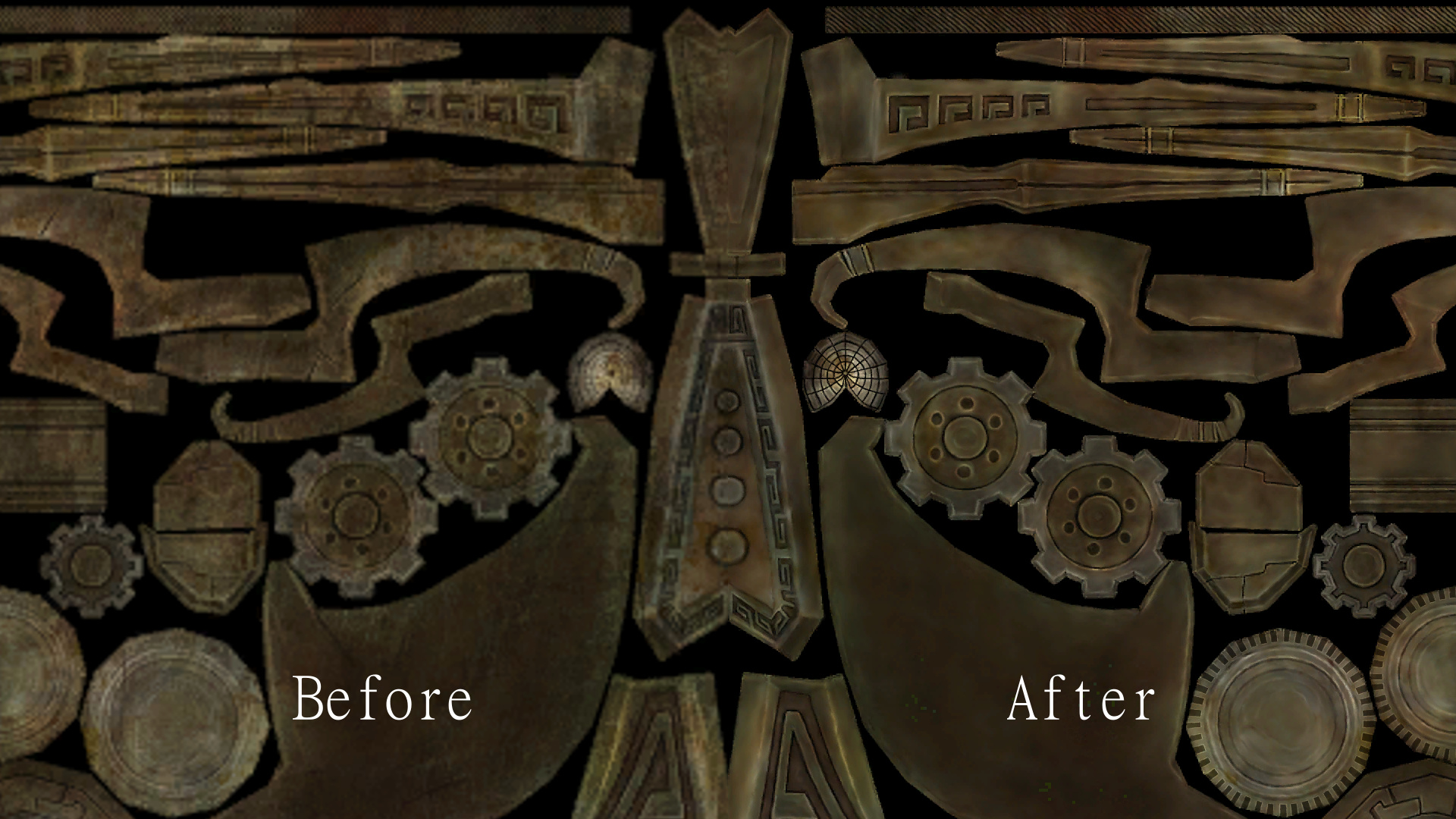 Рука двемерской сферы изменена с оранжевой непонятной "перчатки" на новую блестящую механическую руку. Гребень парового центуриона на вершине его головы был изменен, чтобы больше походить на первоначальный концепт-арты. Разрешение текстур двемерской баллисты теперь 2K вместо 1K. Баллистам также добавлены эффекты отражения и блеска. Цвет новых текстур должен быть таким же, как и у оригинальных.