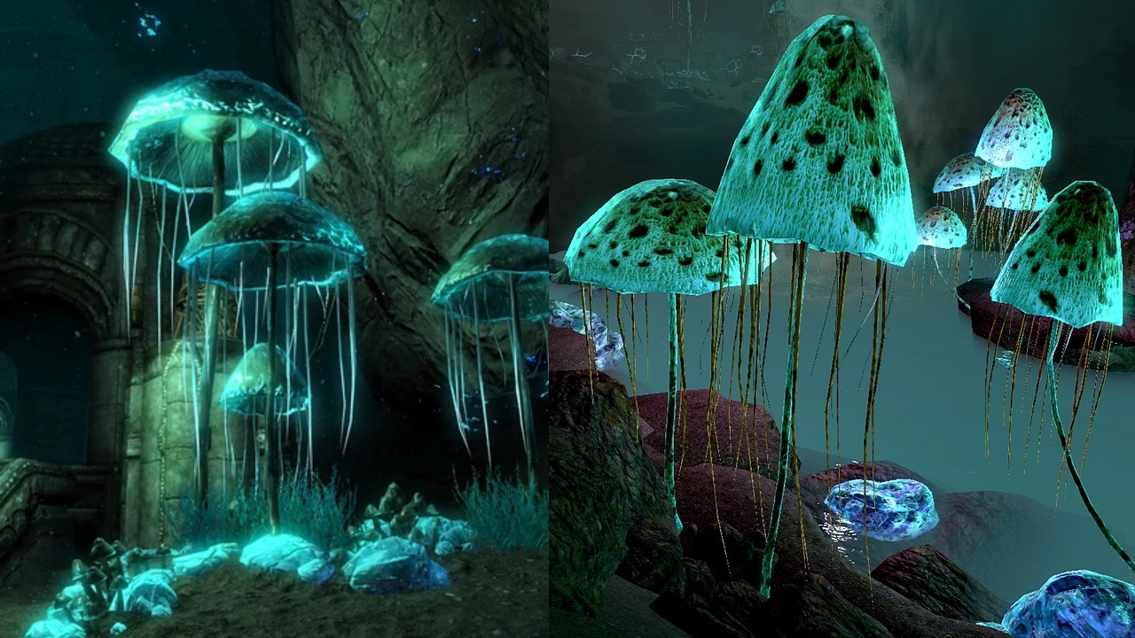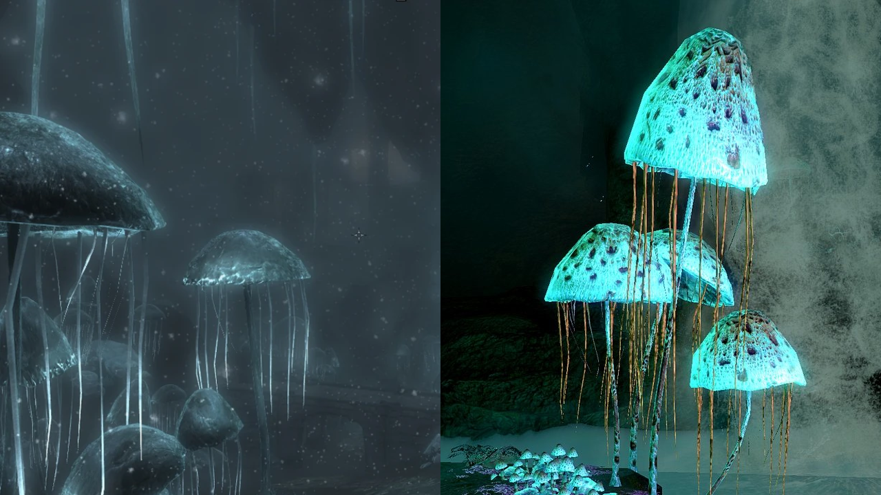 This is a replacement of the textures of the glowing mushrooms of the Black Reach with high-quality ones. The mysterious and mystical grebes of the Reach have been given a more realistic "mushroom" look, and the glow has also been reworked. Texture size 2048x2048, new procedural maps (glow and volume) are included.