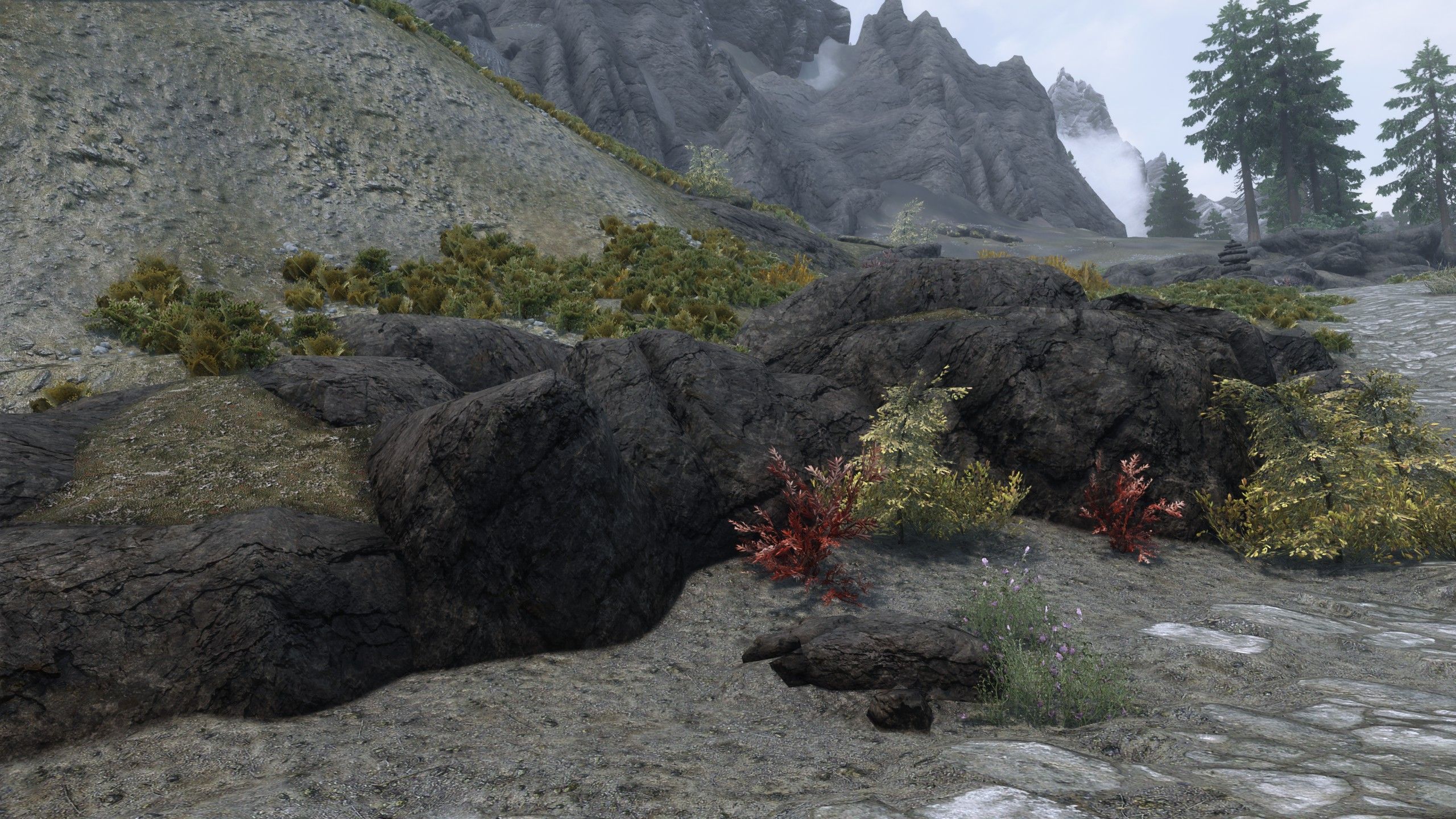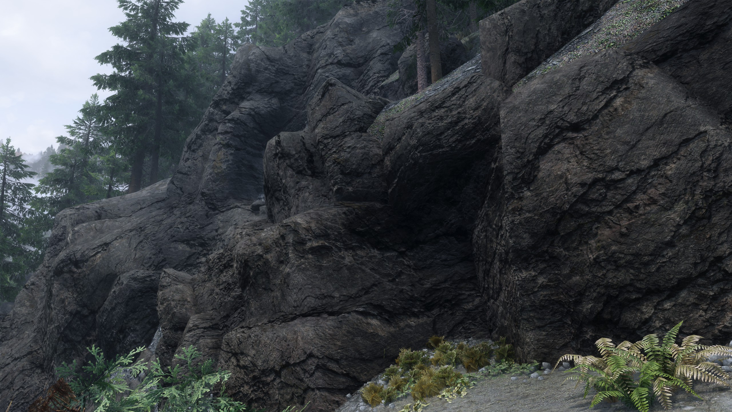 Massive mountain range replacer. Replaces textures with more realistic and high quality ones. The textures of mountains, rocks, cliffs, stones, as well as moss and snow on rocks have been changed.