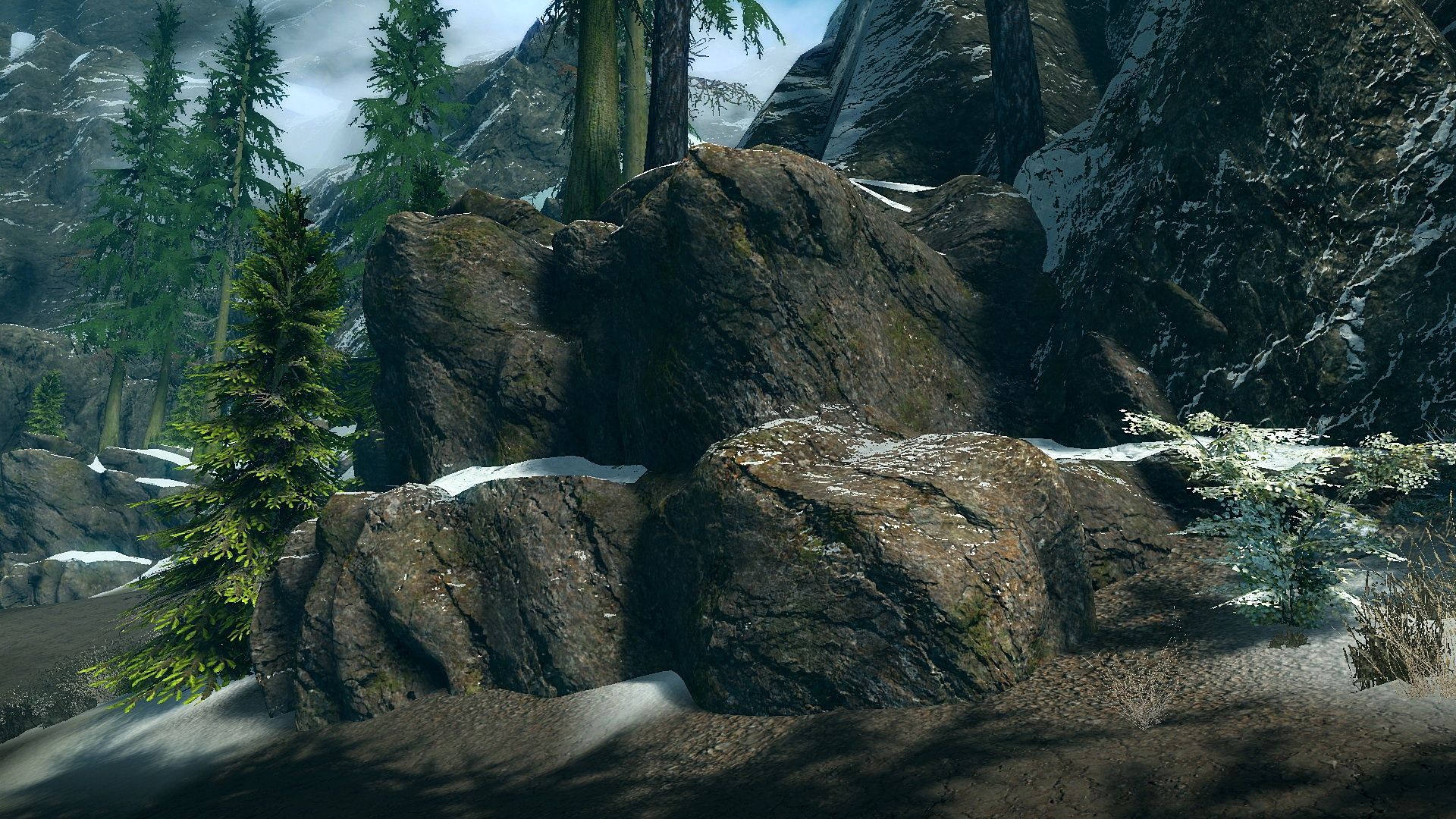 Масштабный реплейсер горных массивов. Заменяет текстуры на более реалистичные и качественные. Изменению подверглись текстуры гор, скал, утесов, камней, а так же мха и снега на скалах.