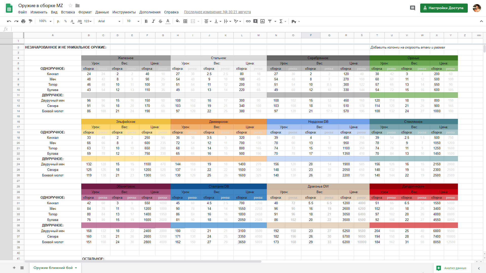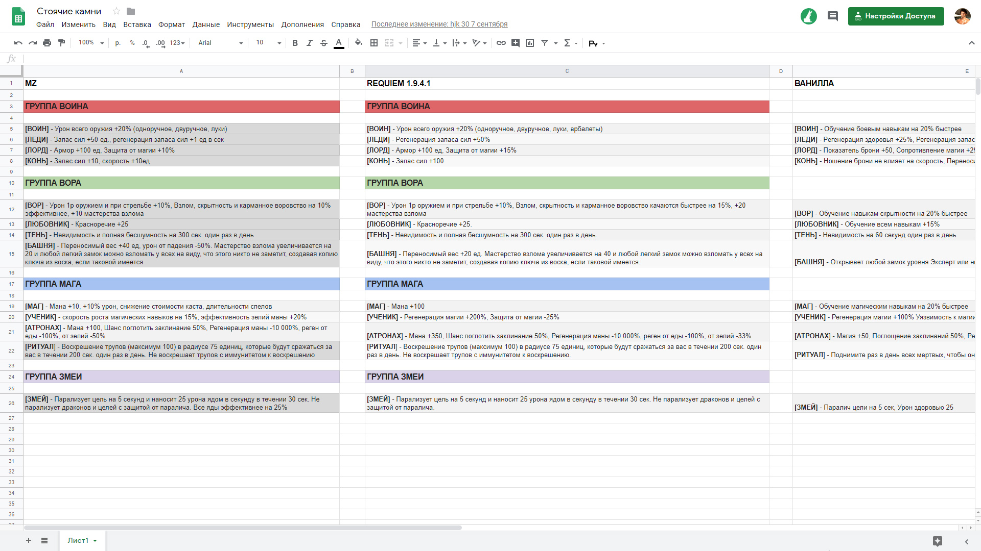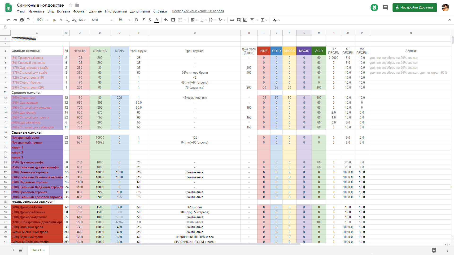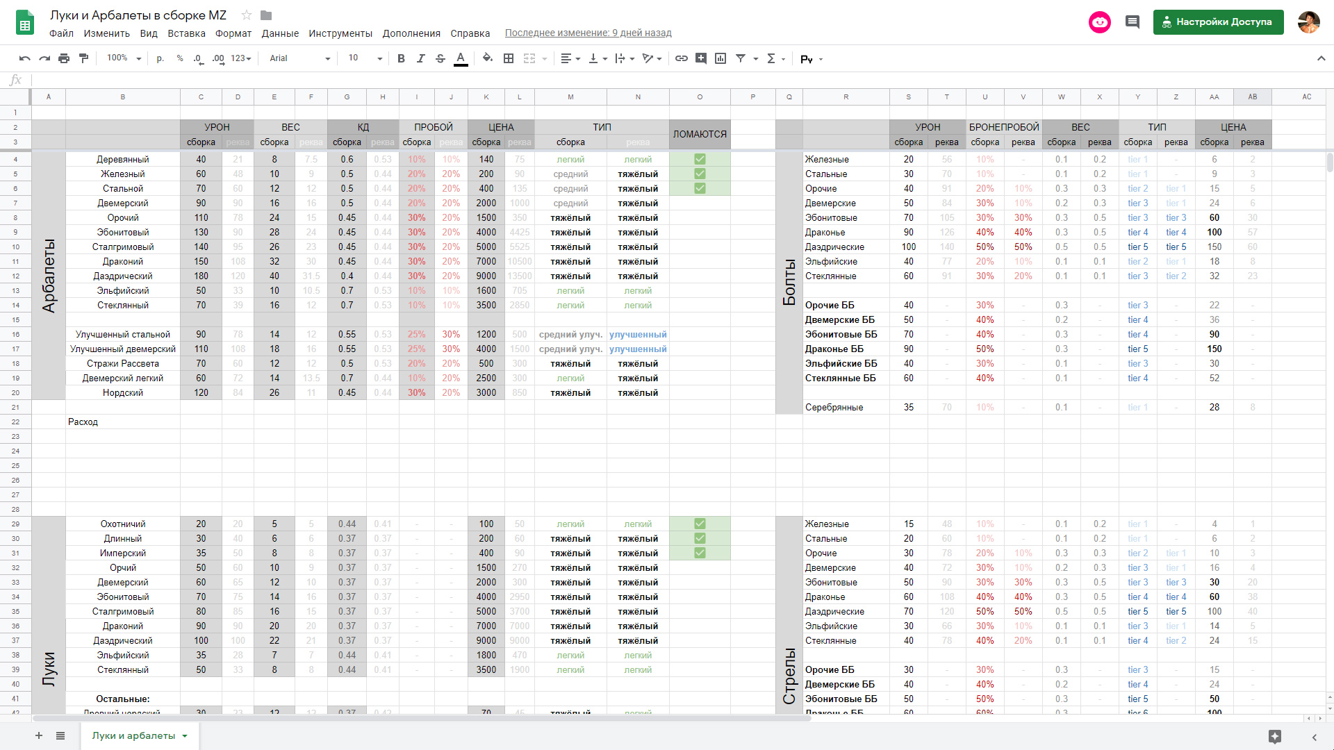 Polaris - таблицы, мобы, баланс