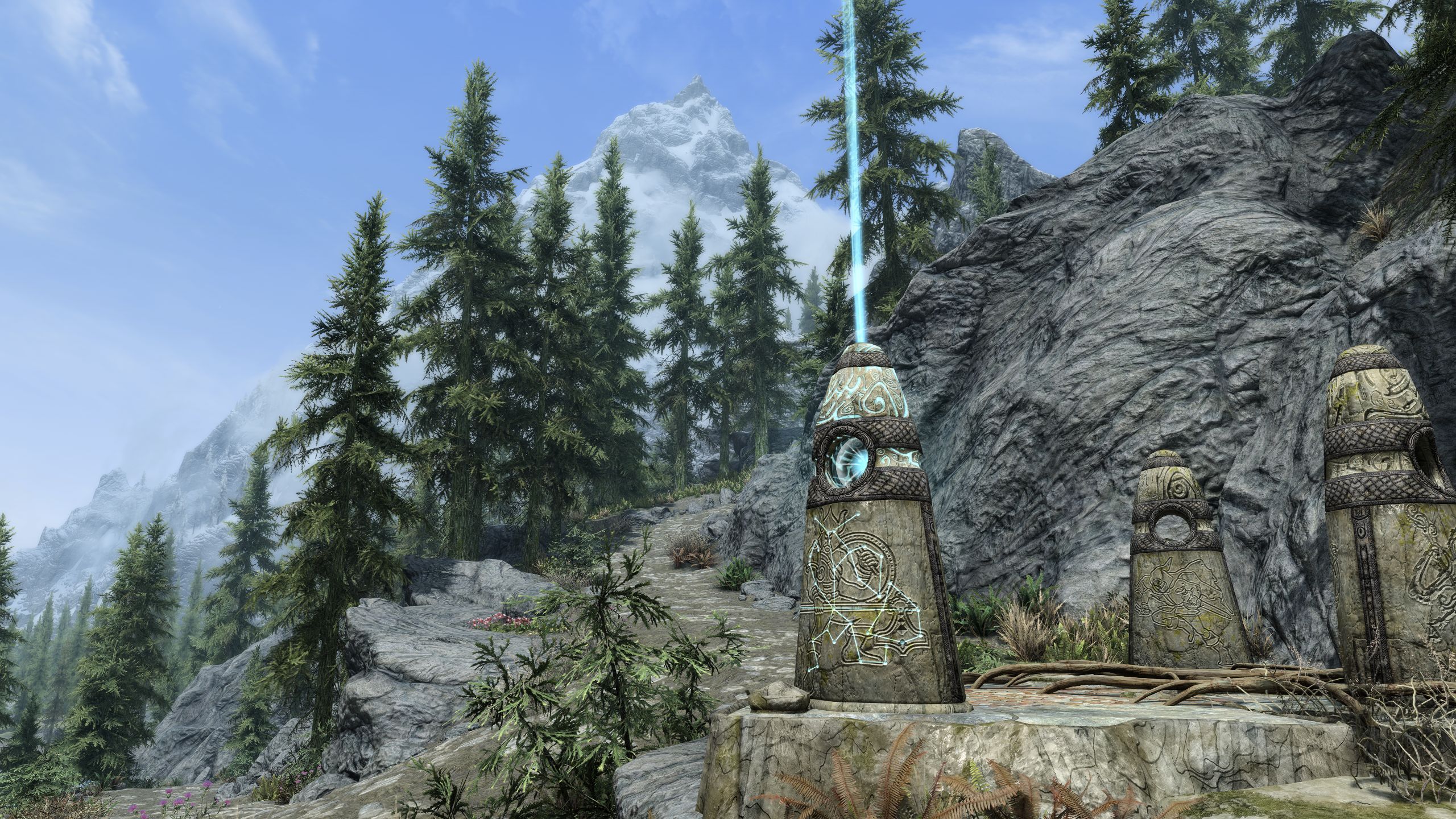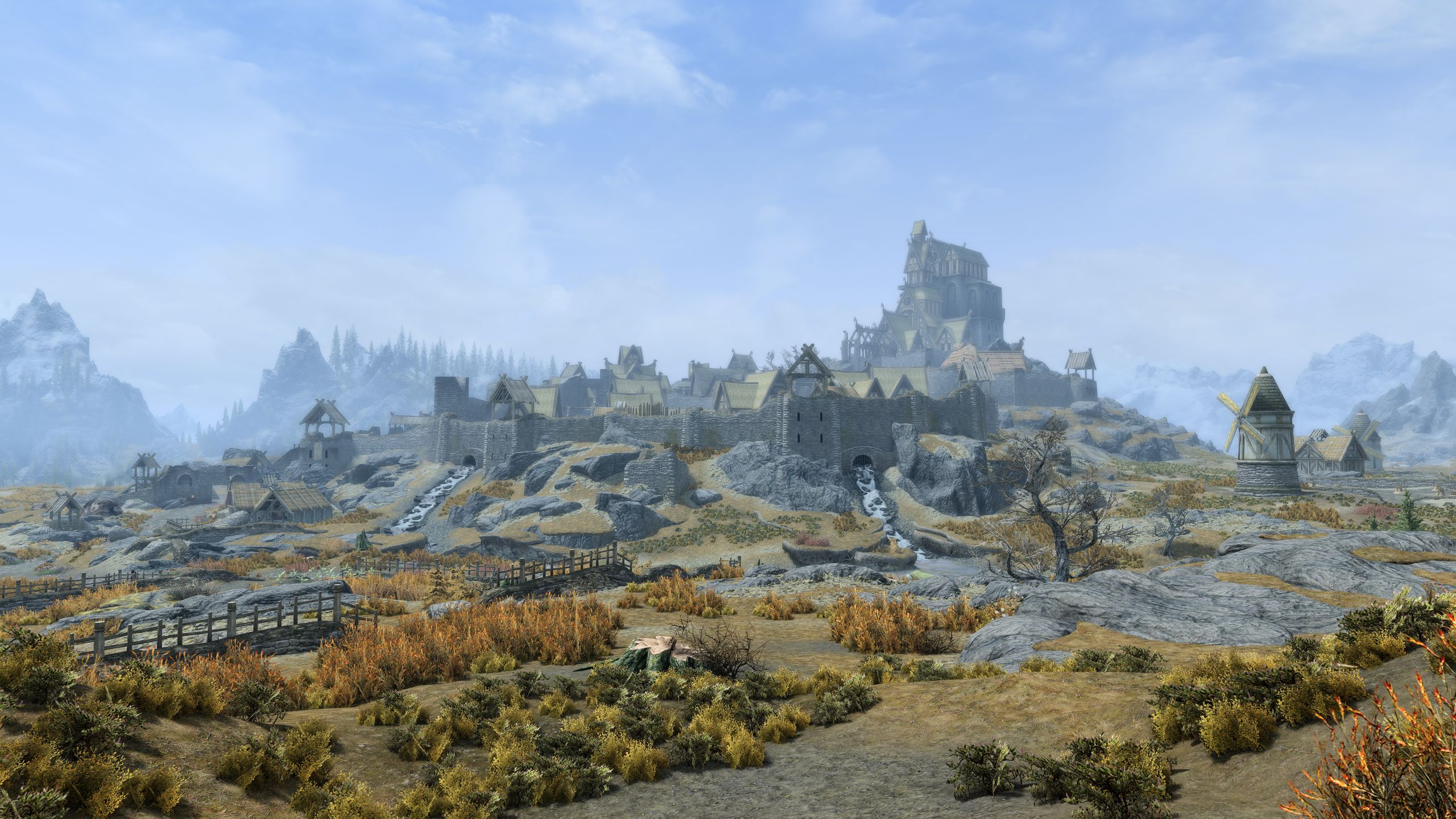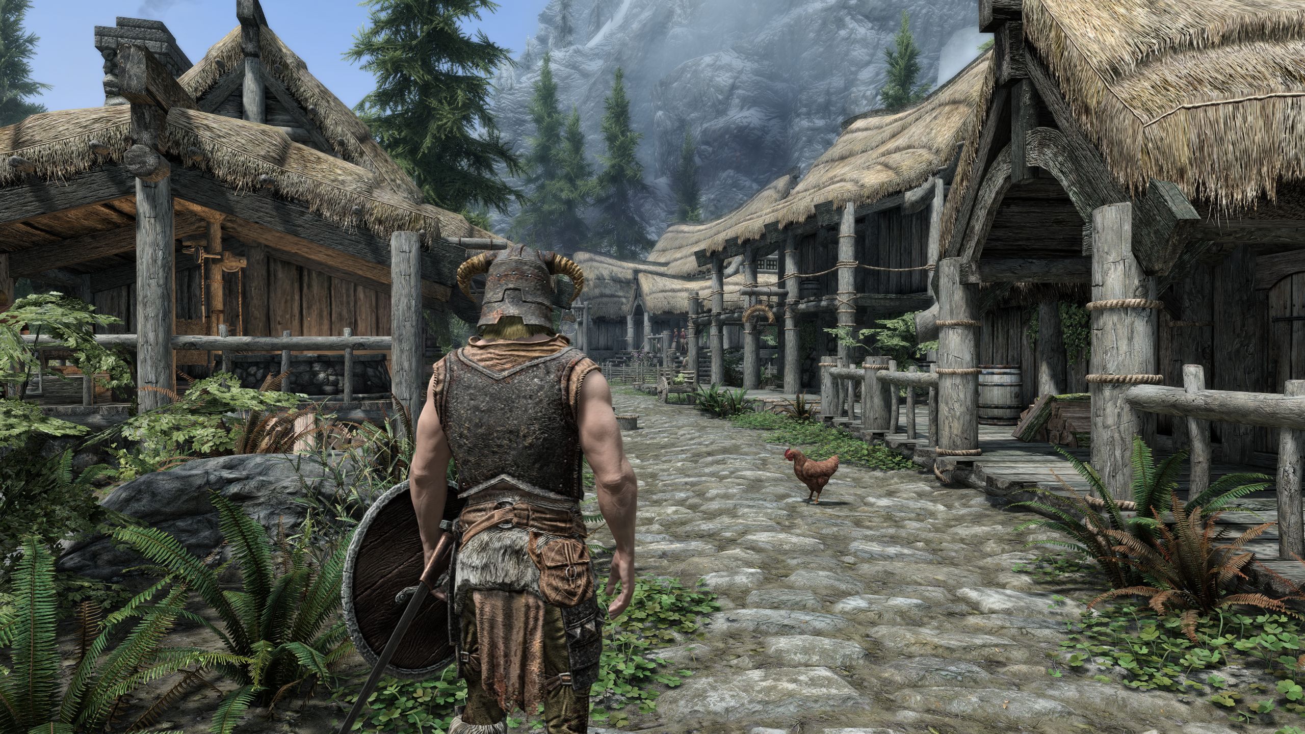 2) Корень визуала составляют Community Shaders и Azurite Weathers III. Последний был модифицирован чтобы лучше работать с CS тонемаппингом, также были добавлены незначительные Reshade эффекты например чтобы придать источникам огня небольшое свечение для более эстетически приятной картинки.