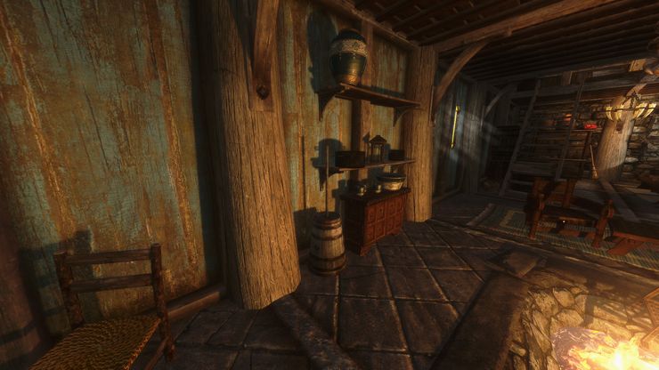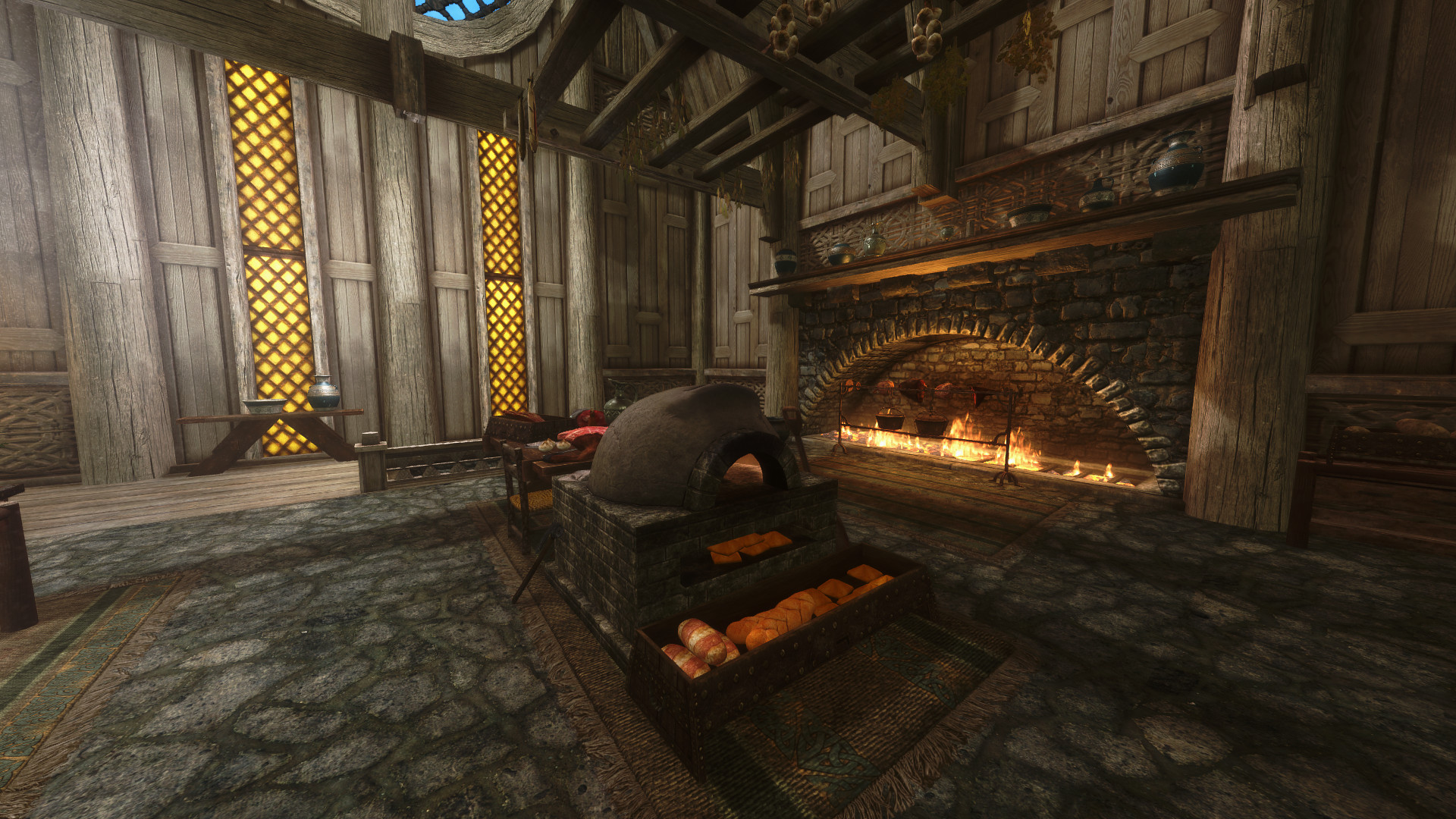Данный мод добавляет печи и маслобойки из дополнения Hearthfire в главные города и здания Скайрима, а также дома игрока.