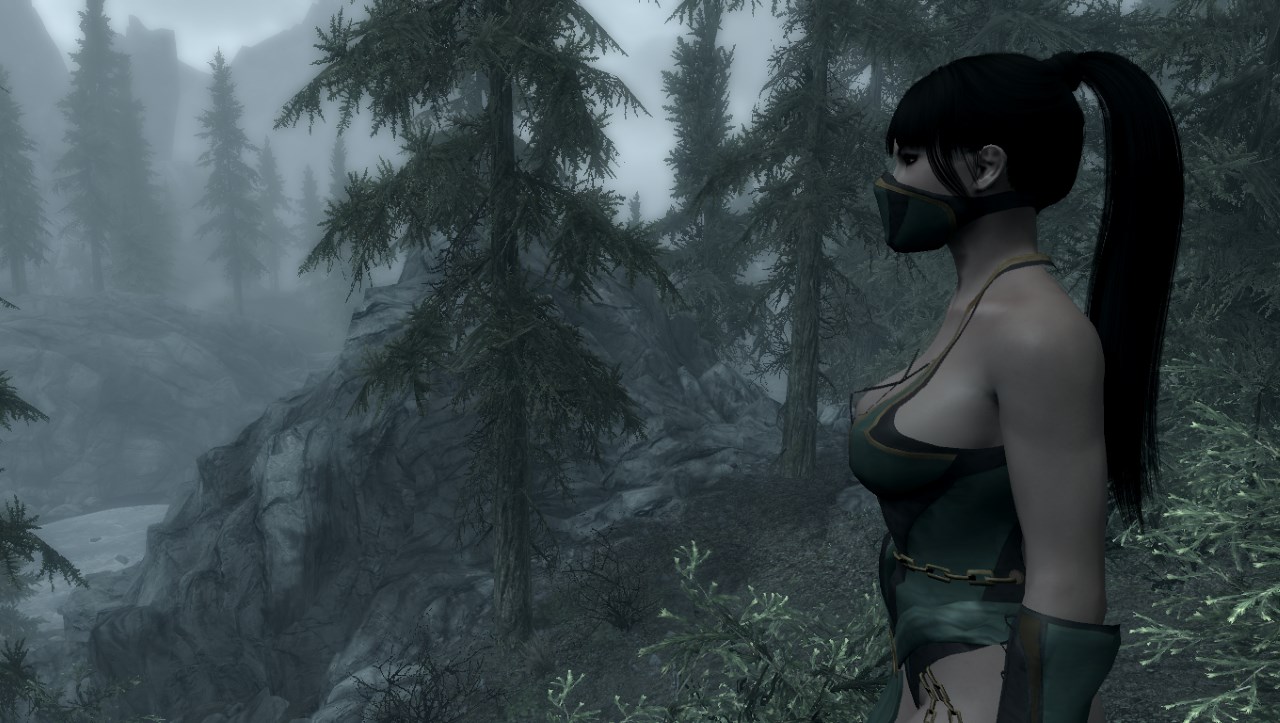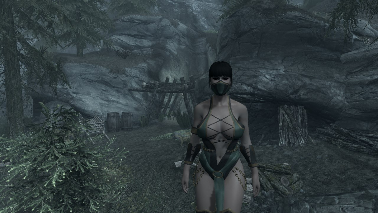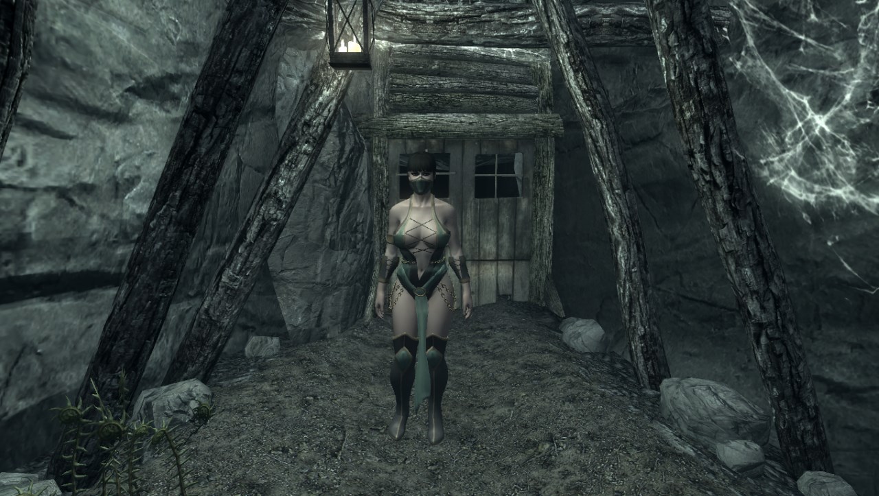Возле Факельной шахты ищите очередной сундук с костюмом Джейд - героини компьютерной игры Mortal Kombat 9. В комплекте есть сапоги, костюм и полумаска. Броня рассчитана на тело CBBE, физики нет. Есть возможность зачарования элементов экипировки, но улучшать костюм на верстаке нельзя.
