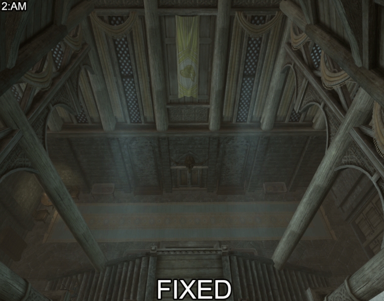 — Рифтен (экстерьер и некоторые интерьеры; удаляет невидимую траву, которая способствовала ужасной частоте кадров в Рифтене).