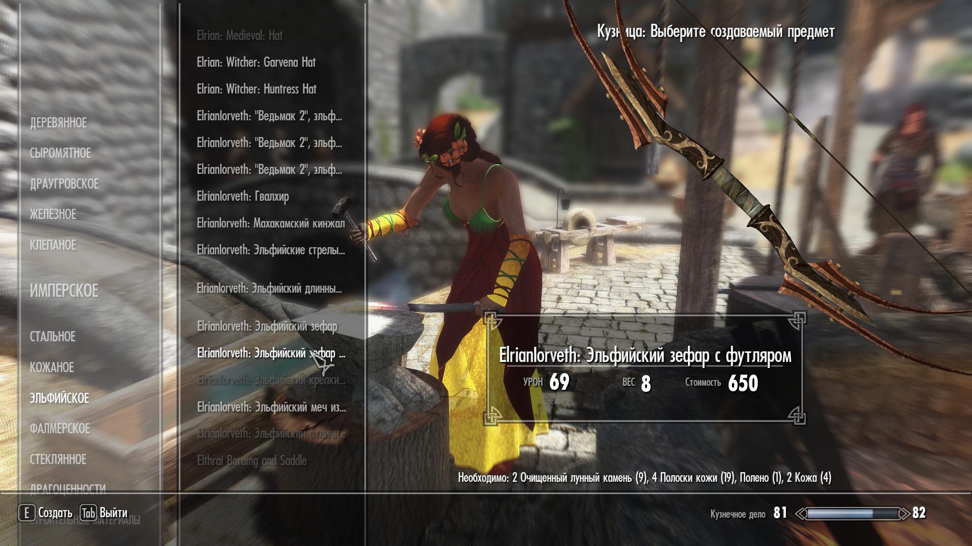 Там же, в кузнице, в разделе "Эльфийское" можно изготовить несколько мечей из Второго Ведьмака, лук Иорвета в 2-ух вариантах(с чехлом и без) и стрелы.