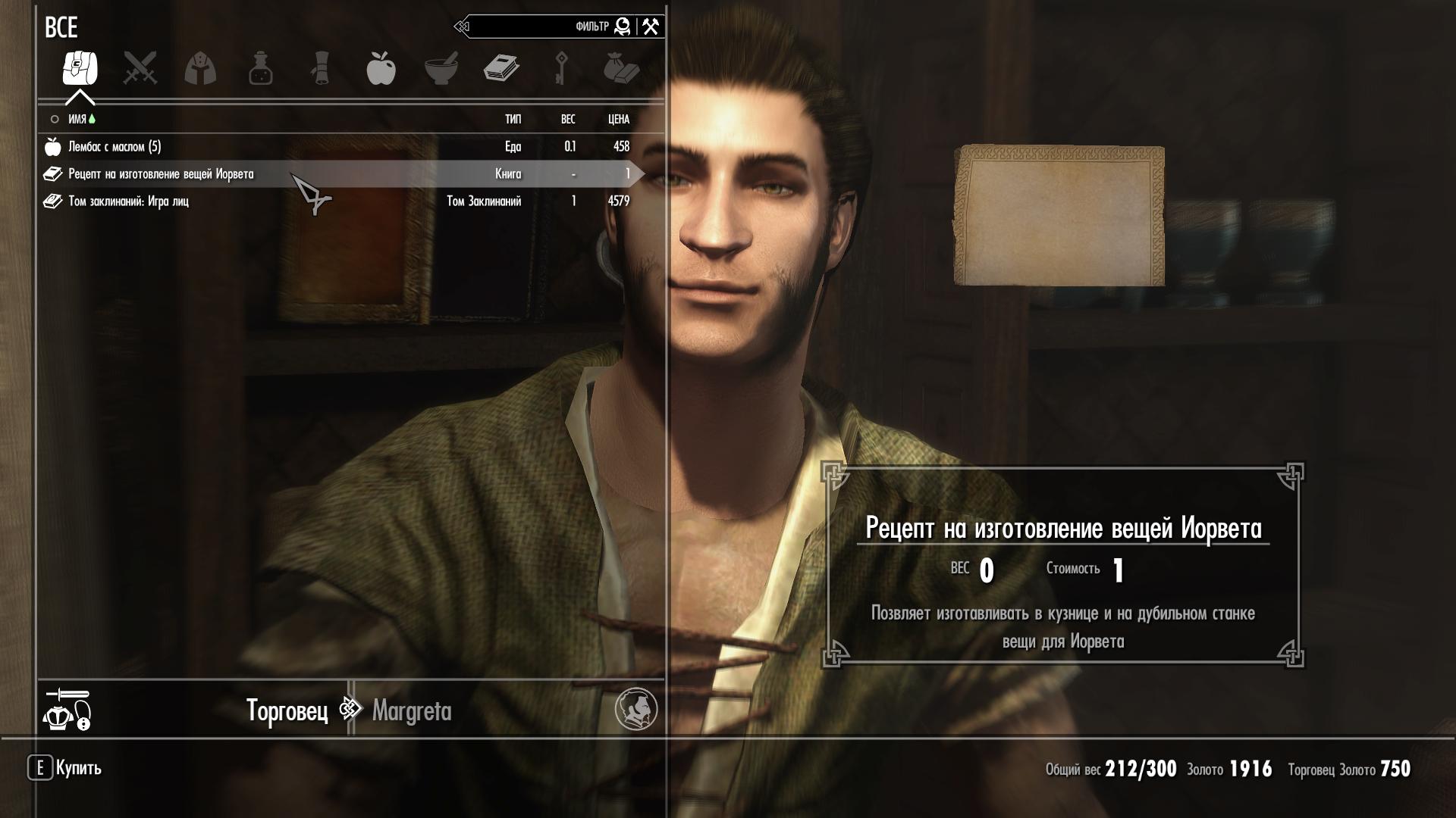 - Снаряжение Иорвета в кузнице теперь можно крафтить только при наличие в инвентаре рецепта на изготовление брони (приобрести можно у того же Белетора в Вайтране). Это позволяет не засорять без надобности интерфейс кузни. Отдельная благодарность пользователю GOLDEN_KINDER за целебные пинки в сторону создания приличного дизайна для рецепта :)