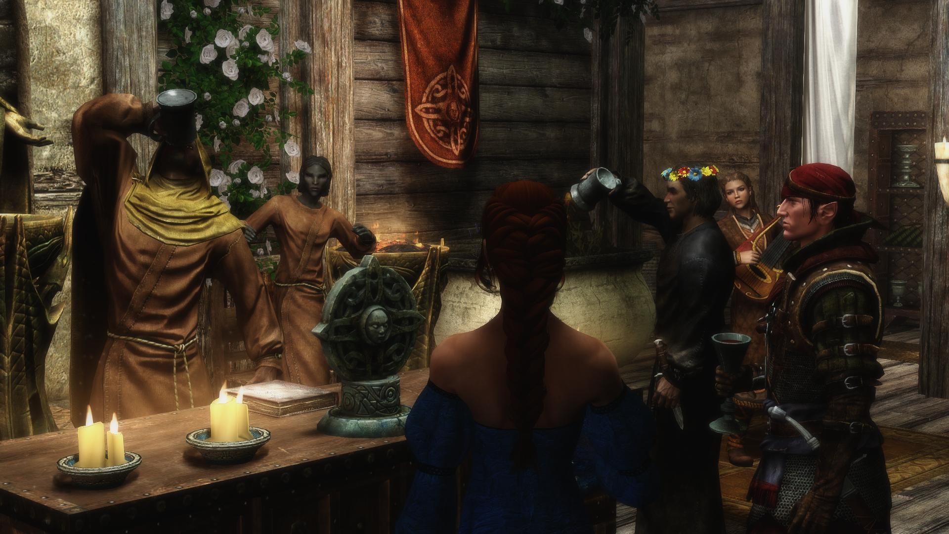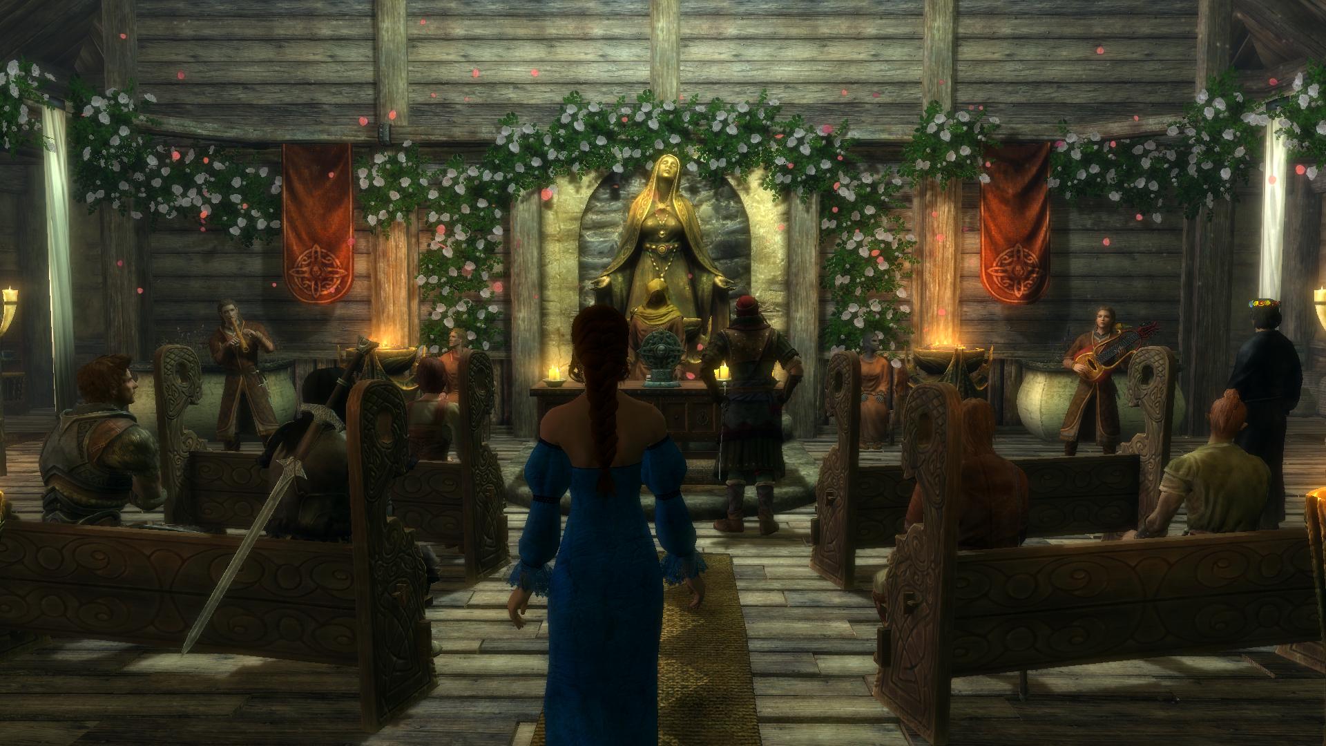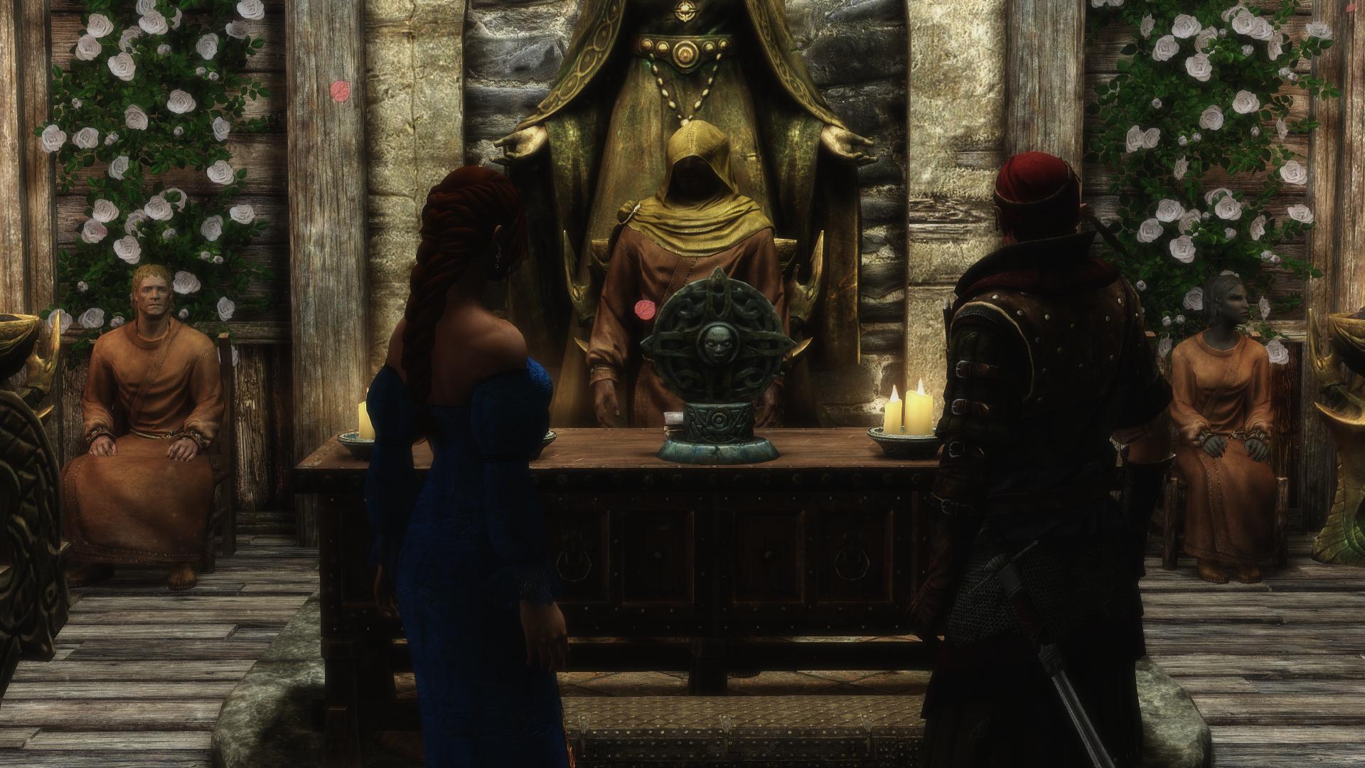 Условия для старта свадебного квеста стандартные - расспросить Марамала о храме Мары и особенностях свадебных традиций Скайрима,