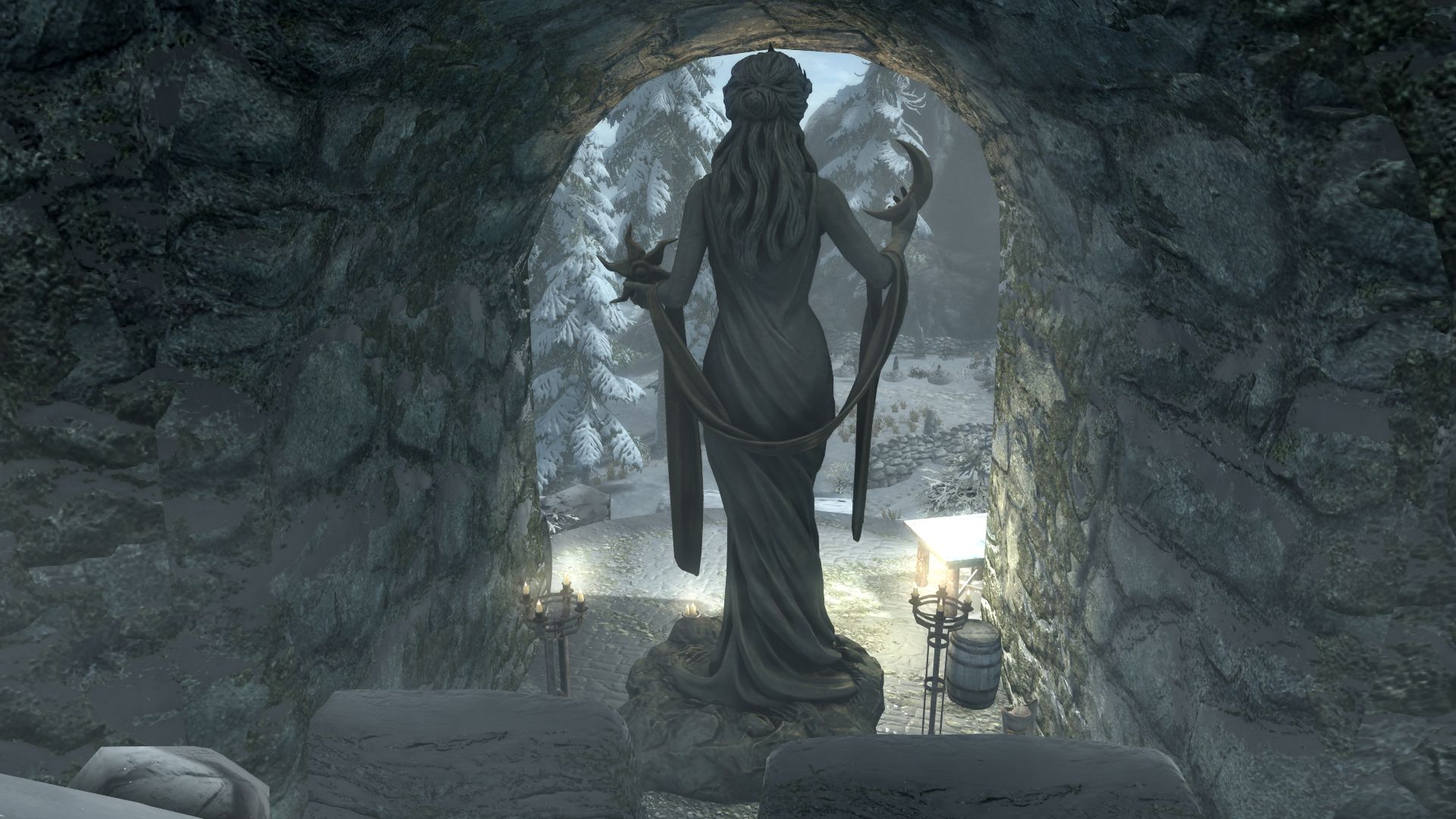 Добавляет новую статую Азуры, расположенную восточнее Виндхельма рядом с Привалом Беженцев.