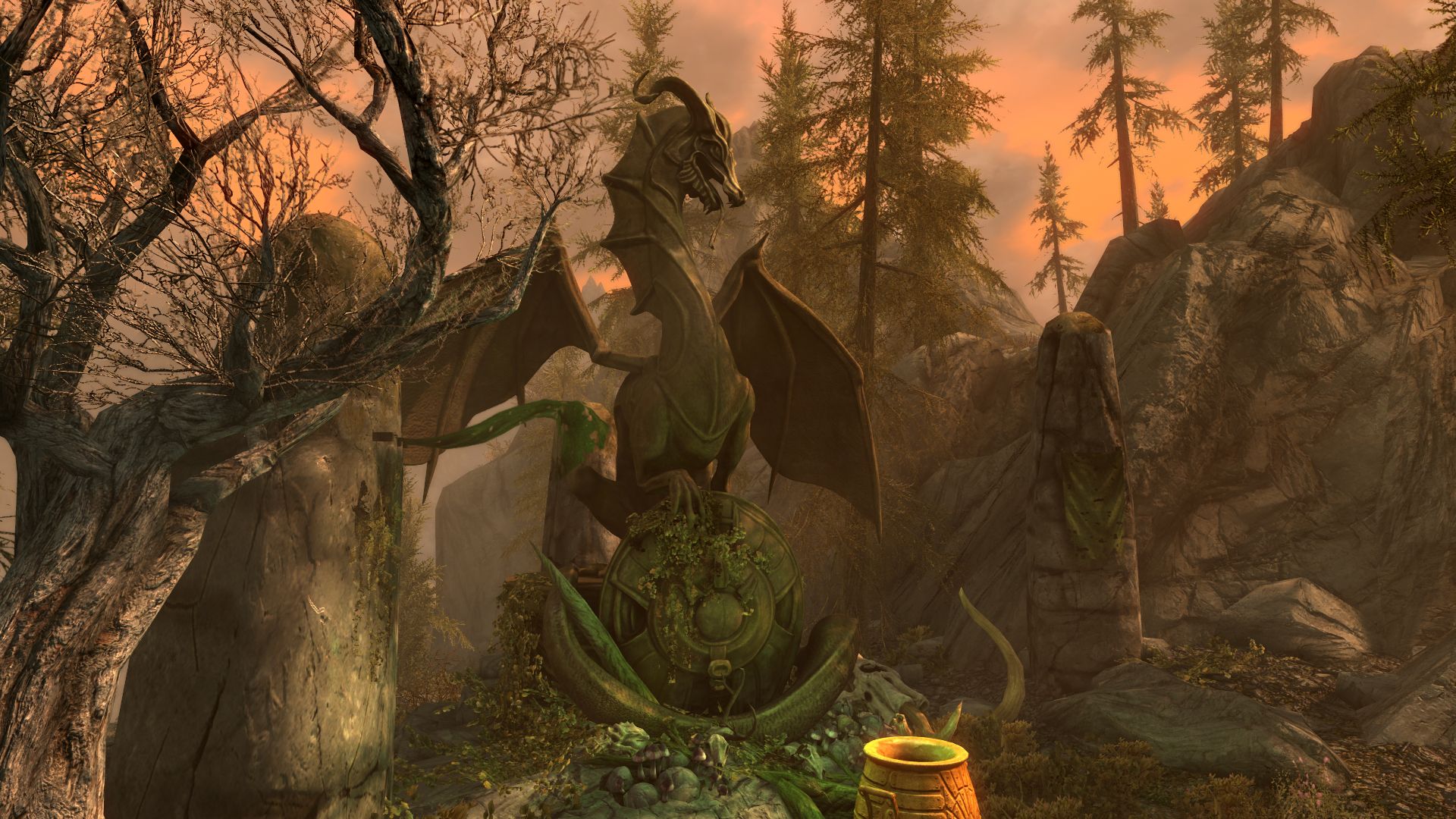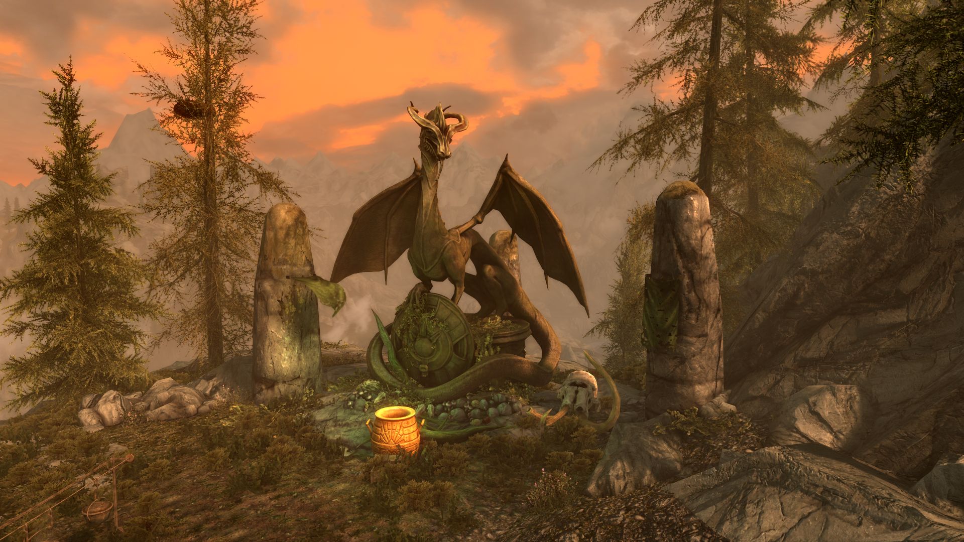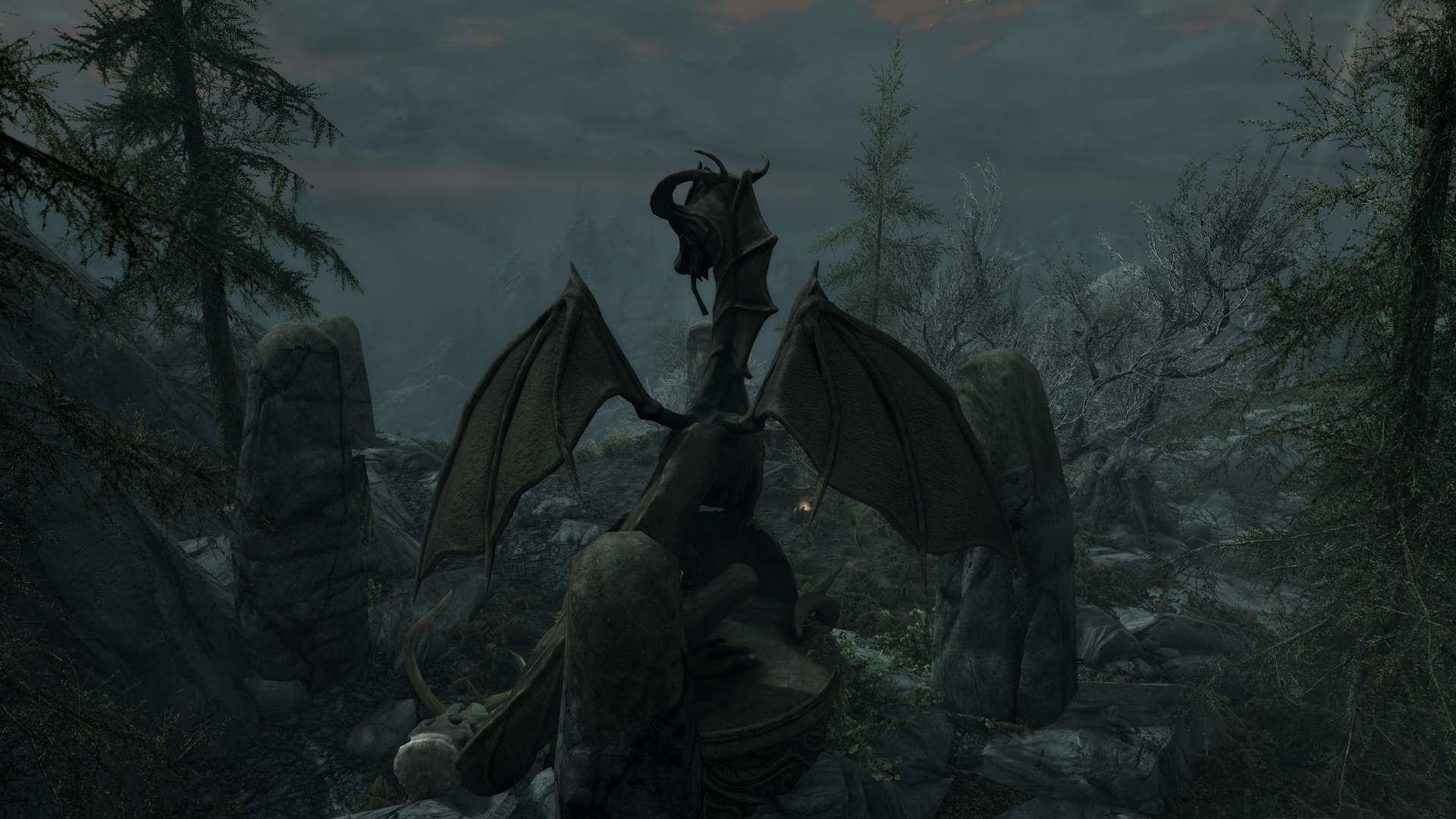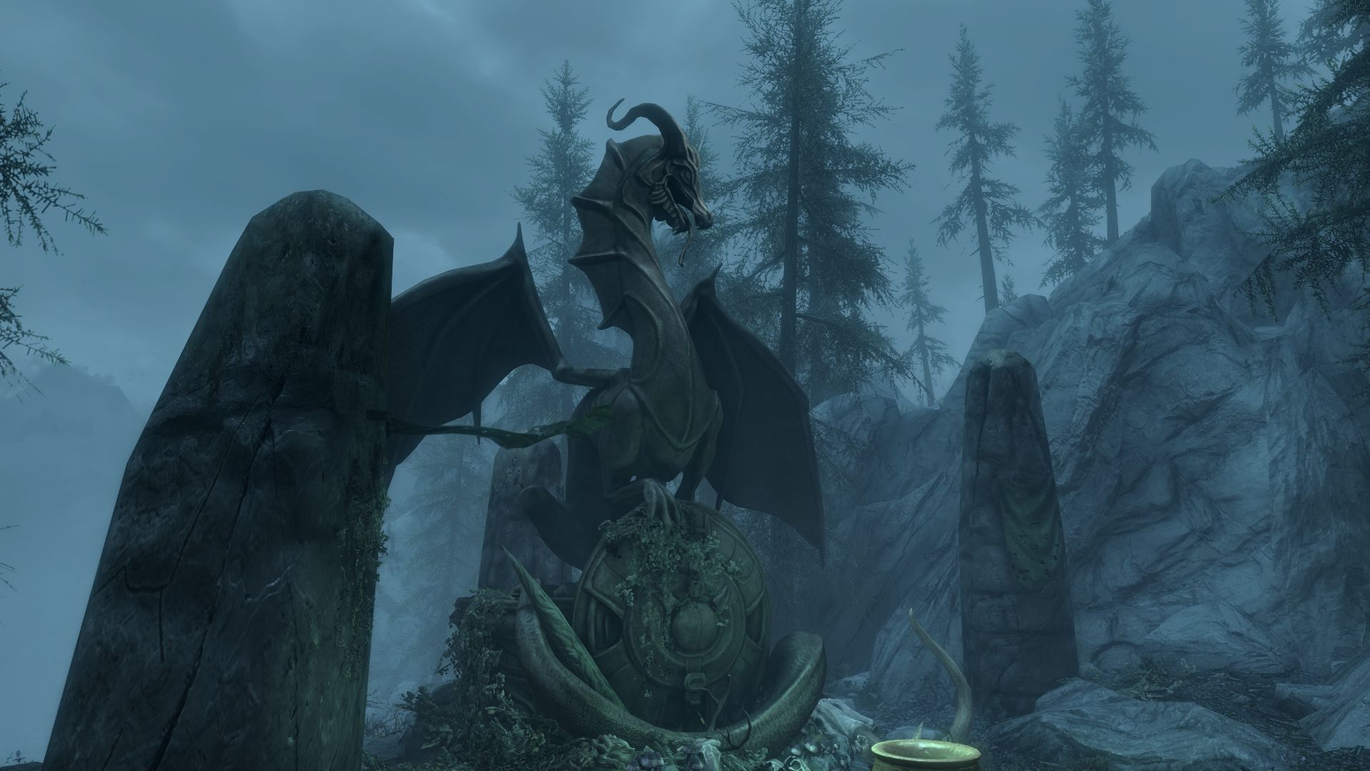 Да всёж не вписываются в скайрим 7-ми конечные драконы, привык уже что у скайримских драконов 5 конечностей (2 задних лапы, 2 крыла и хвост), как-то дико выглядит эта статуя с 4-мя аш лапами, этож не пигас драконий.