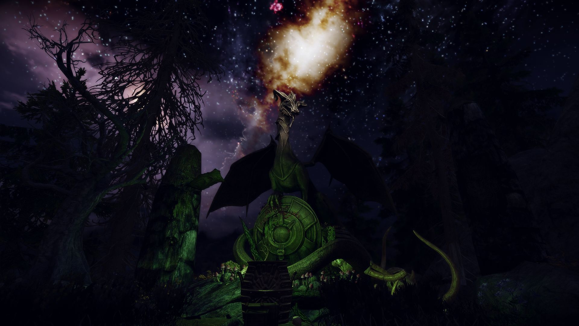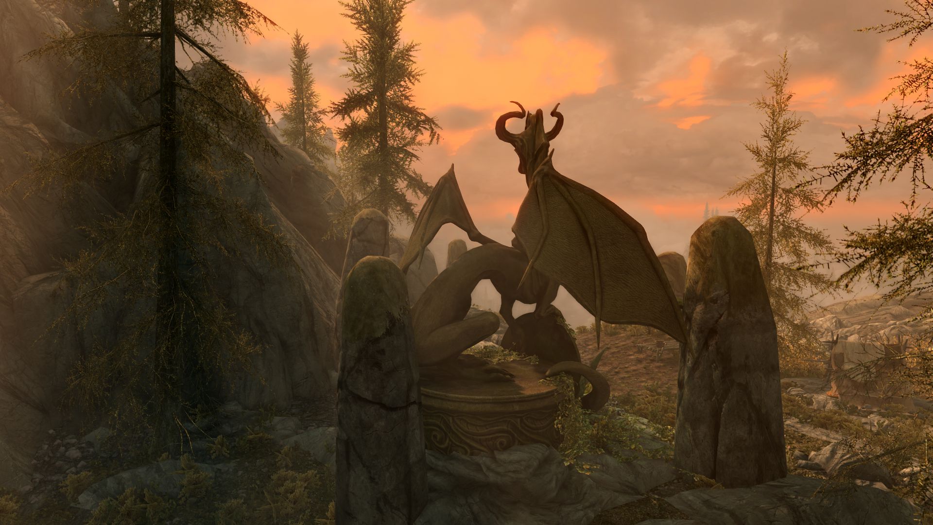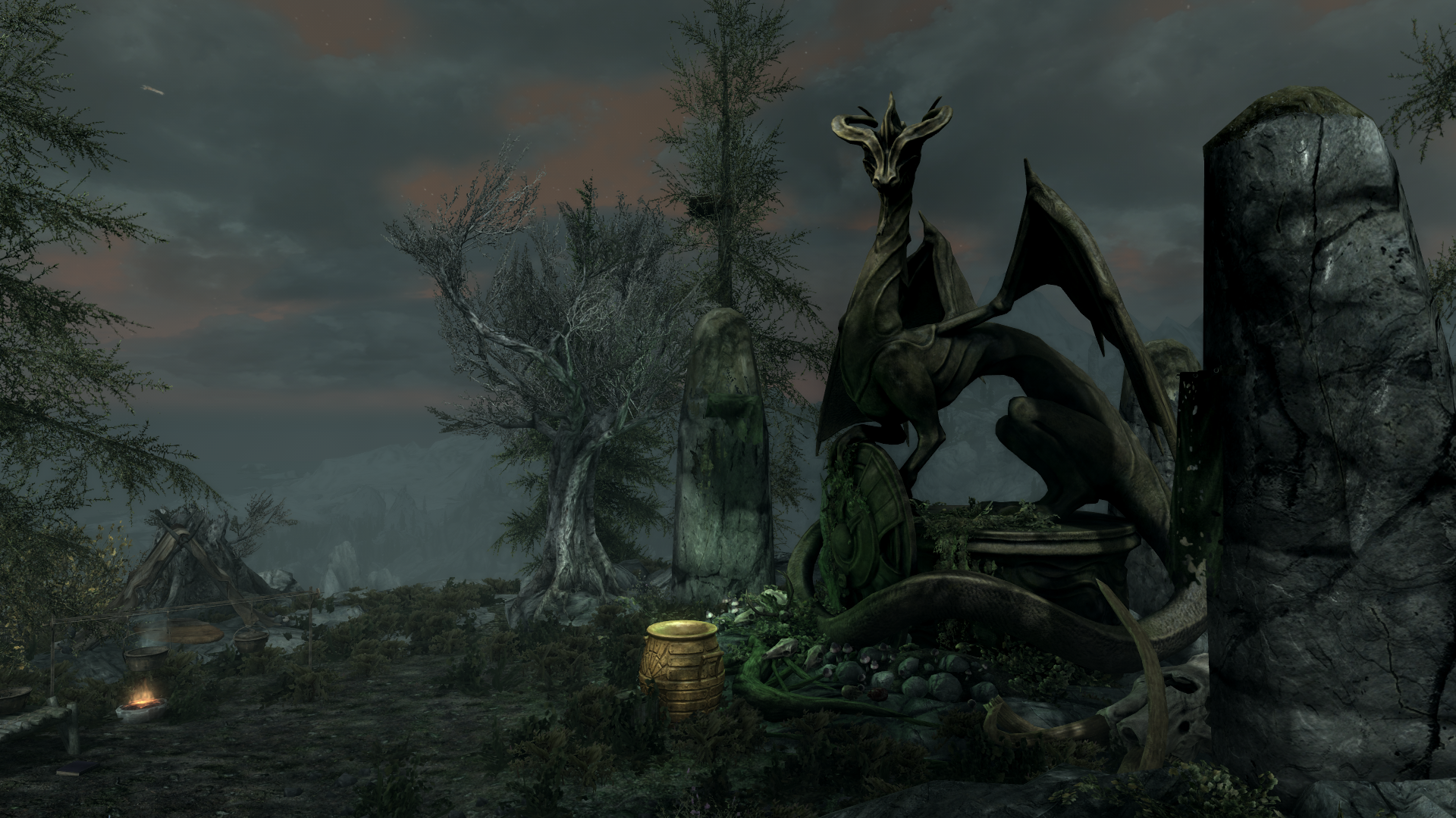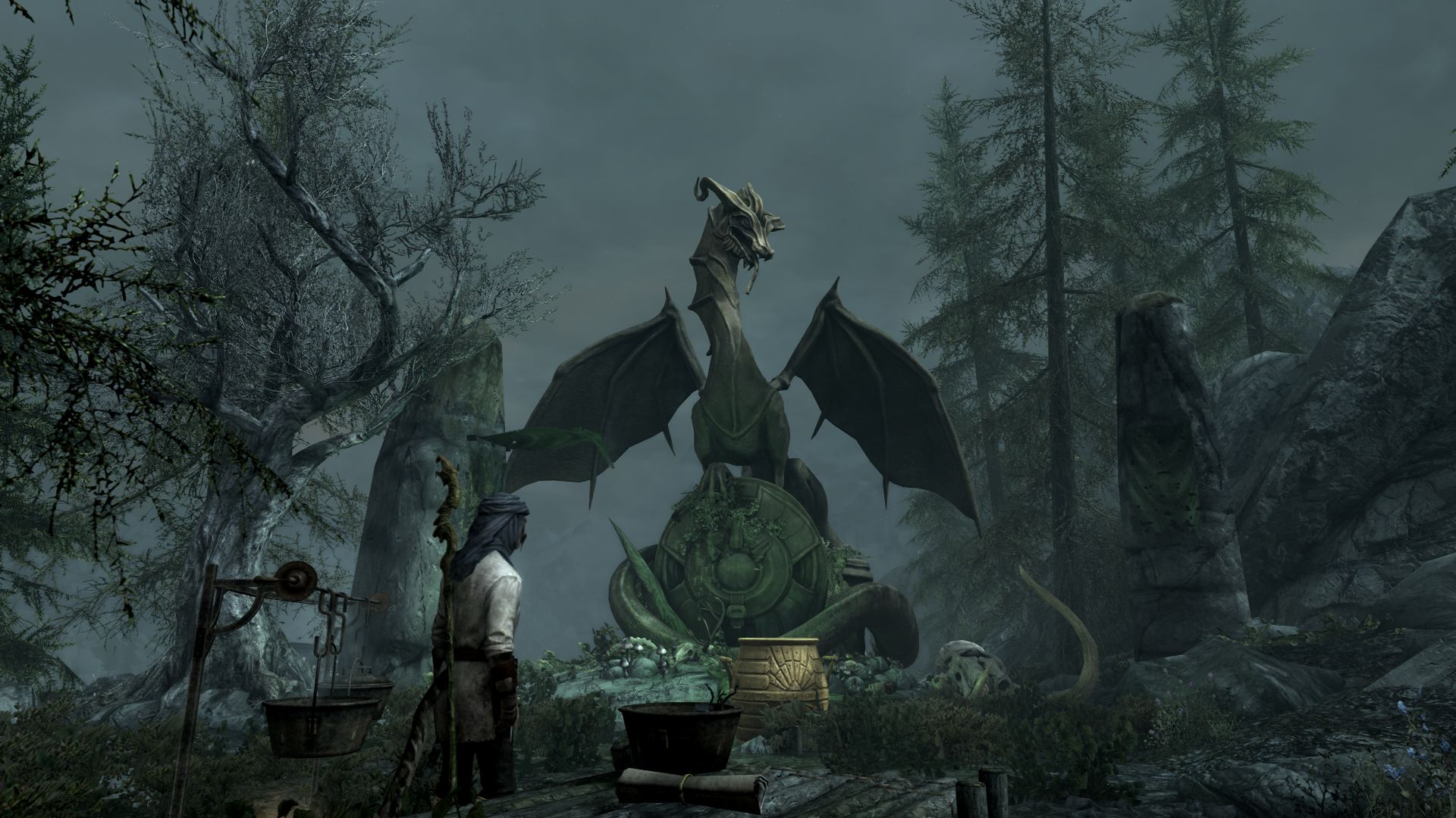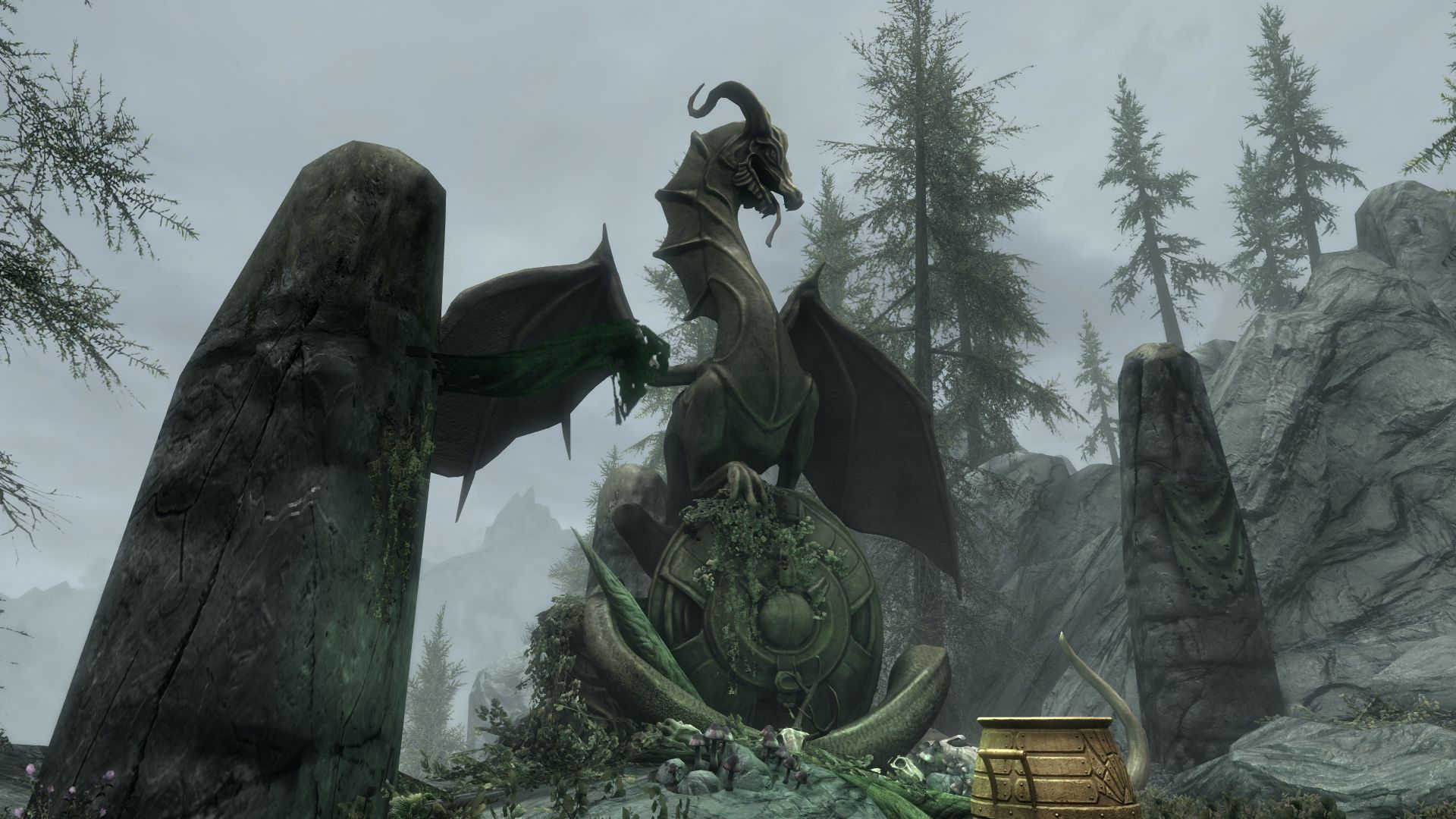 Да всёж не вписываются в скайрим 7-ми конечные драконы, привык уже что у скайримских драконов 5 конечностей (2 задних лапы, 2 крыла и хвост), как-то дико выглядит эта статуя с 4-мя аш лапами, этож не пигас драконий.