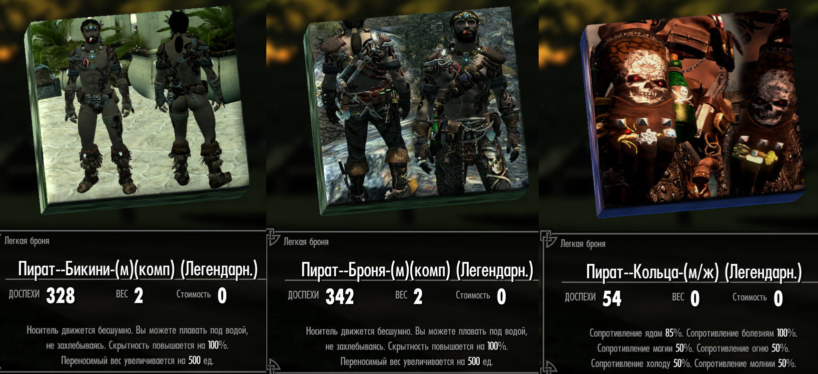 -Для МГГ (то есть меня): Броня Пирата, Бикини, кольца, украшения, Шляпа и пончо.