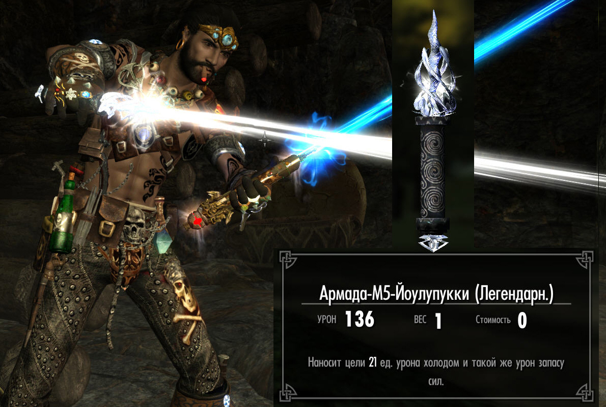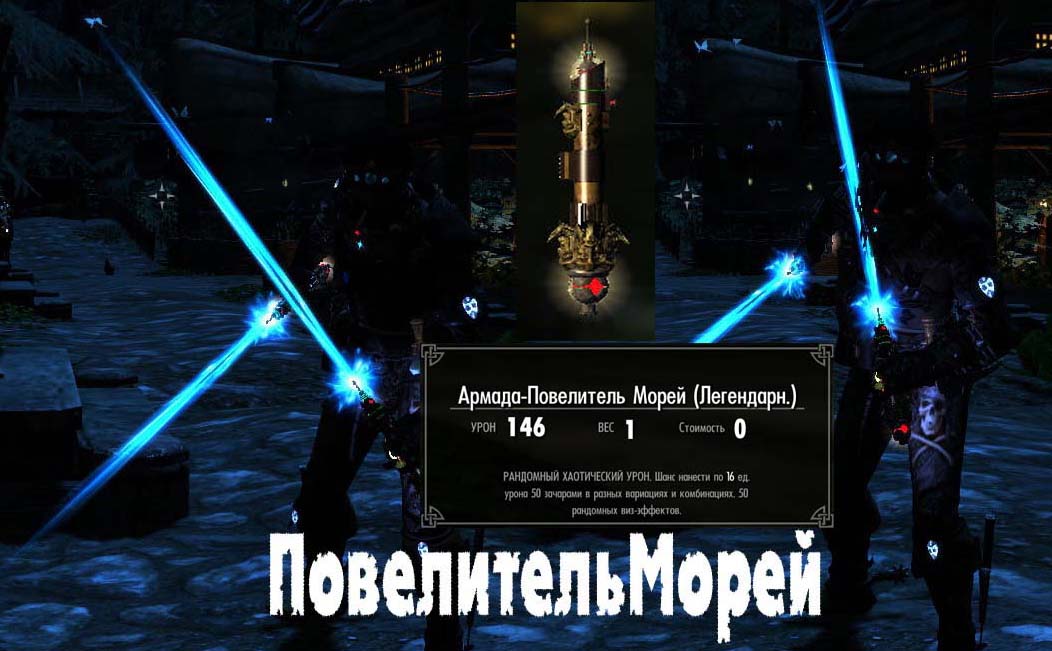 -Мечи Повелитель Морей и Покоритель Глубин. Уникальные. Анимированные. Имеют 50 рандомных визуальных эффектов (в Мире такой разработки нет) при попадании по НПС и живности. Каждый эффект это по сути зачар, который несёт 5ед урона здоровью. А поскольку эффектов 50 то они срабатывают и по 2 и по 3 и по 4 сразу. Полный ...... рандом)))) Так же только рукояти мечей отображаются на теле. А при экипировке появляются световые лезвия от автора registrant.