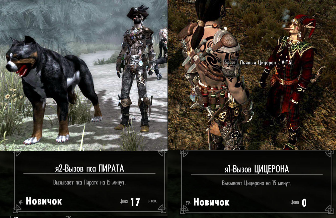 -Вызов Цицерона на 15мин. Личный Шут. Лечит. Владеет Парализующим ударом. Имеет моё вооружение. Не зависит от ванильного варианта, у него свои меши и текстуры вставлены в мод. Полная реконструкция брони и лица от Ванили. Курит сигару когда пьяный, а пьян он всегда и у сигары есть дым. То есть это не Ванильный Цицерон. Это его брат, но намного круче.