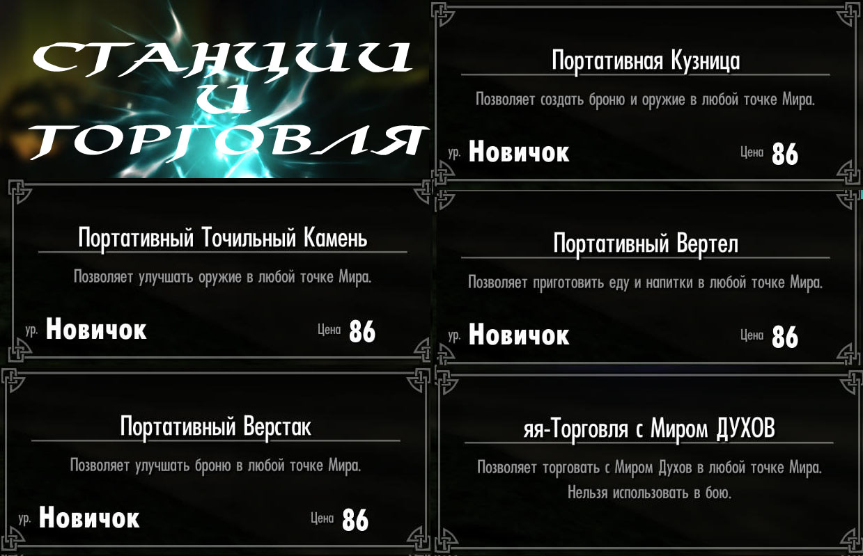-Возможность через каст призвать себе в ЛЮБОЙ точке Мира: кузницу, точильный камень, верстак и котелок.