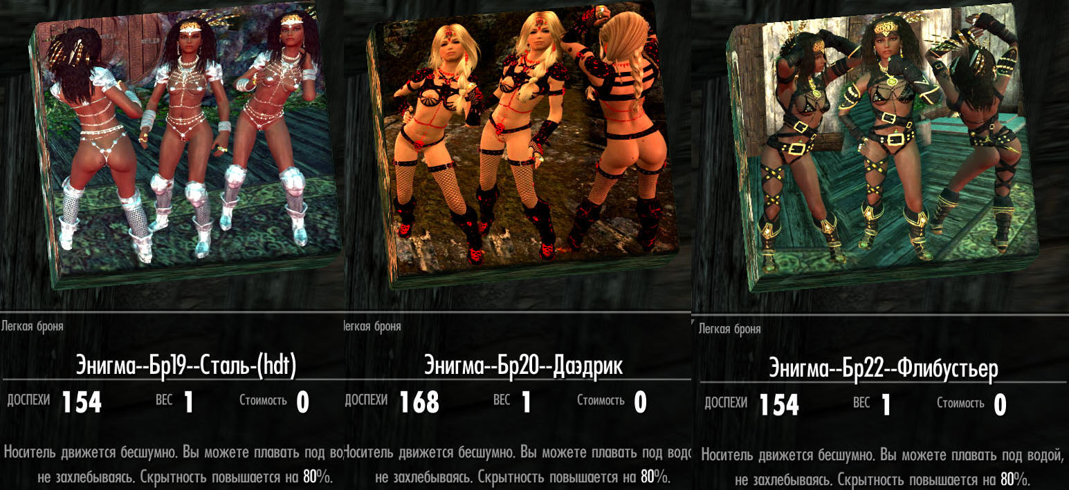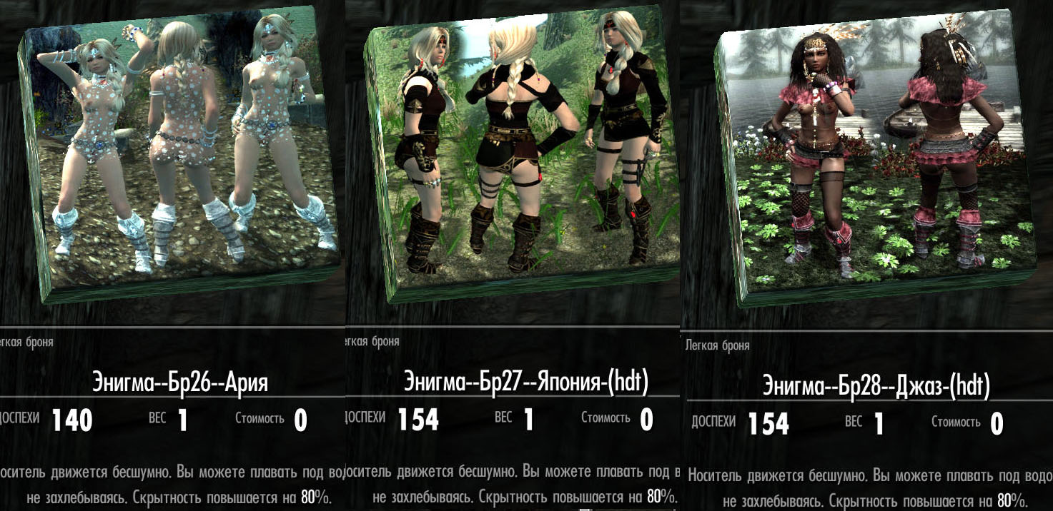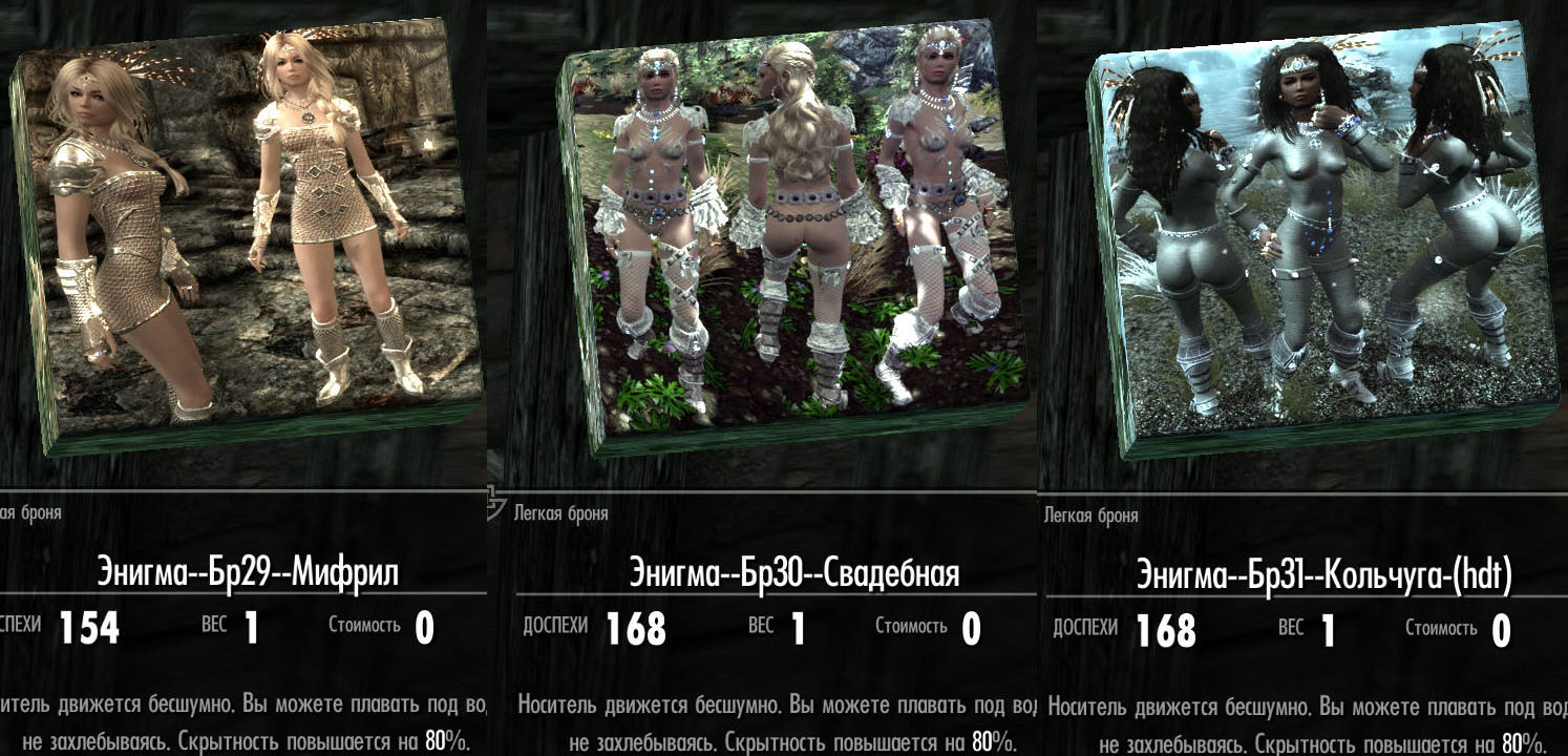 -"Купание обнаженными Энигме, Золушке, Дейенерис, Жасмин и Хешке. Это раздевание до гола в любых водоемах Скайрима и прочих Земель. ВЕЗДЕ. Ставить по желанию.