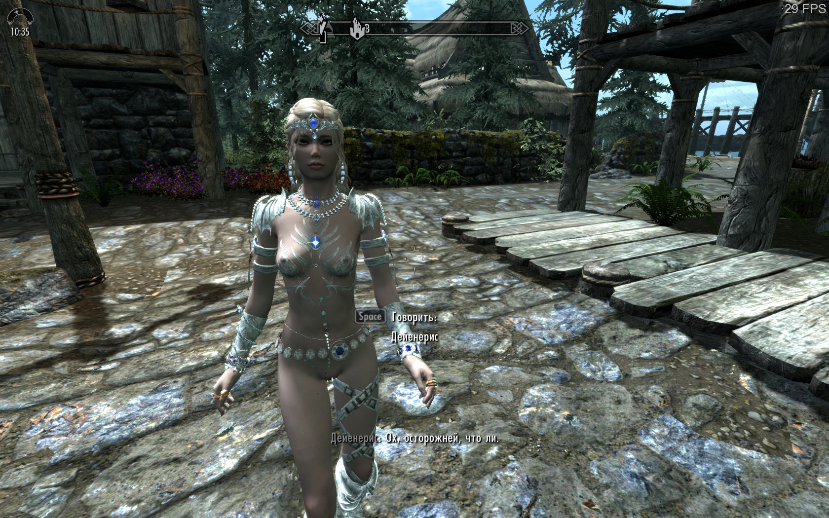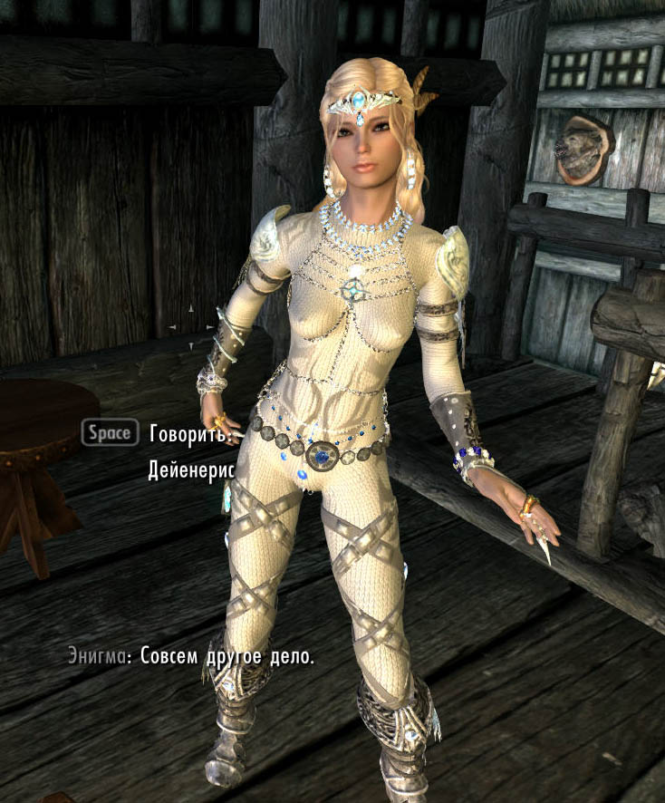 Где находится: Виндхельм. Кабак Очаг и Свеча. Нанимать будите её голую. Не стал делать ей одежду, вся одежда в Энигме и Золушке. А одевать в ванилиные тряпки рука не повернулась.