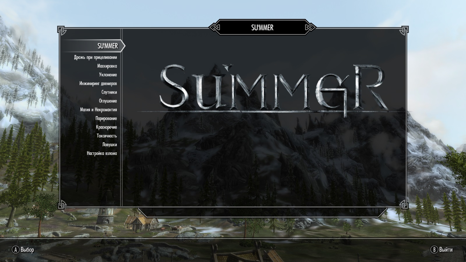 SU'MMER - это мультифункциональное геймплейное дополнение, которое вводит новые механики, восстанавливает старые из предыдущих игр серии The Elder Scrolls и балансирует существующие в Скайриме. В состав мода включены: