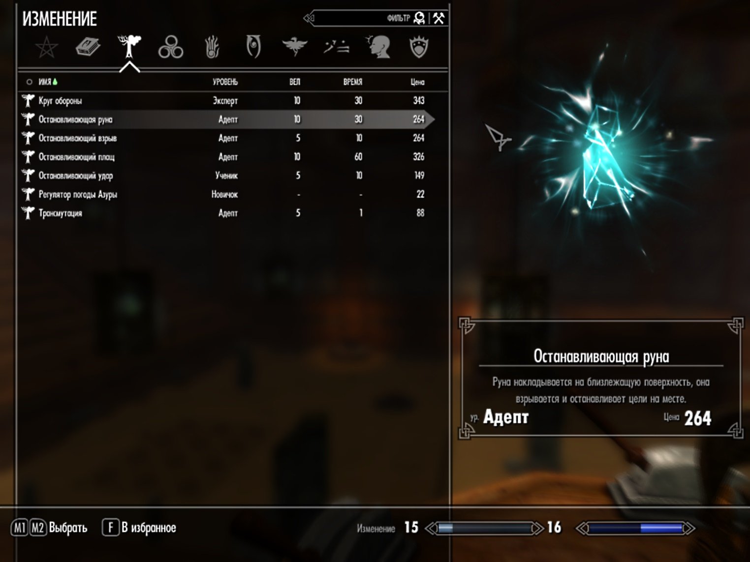 В игре появятся 5 томов заклинаний и 2 ед. оружия: меч и посох. Все заклинания принадлежат к школе Изменения: