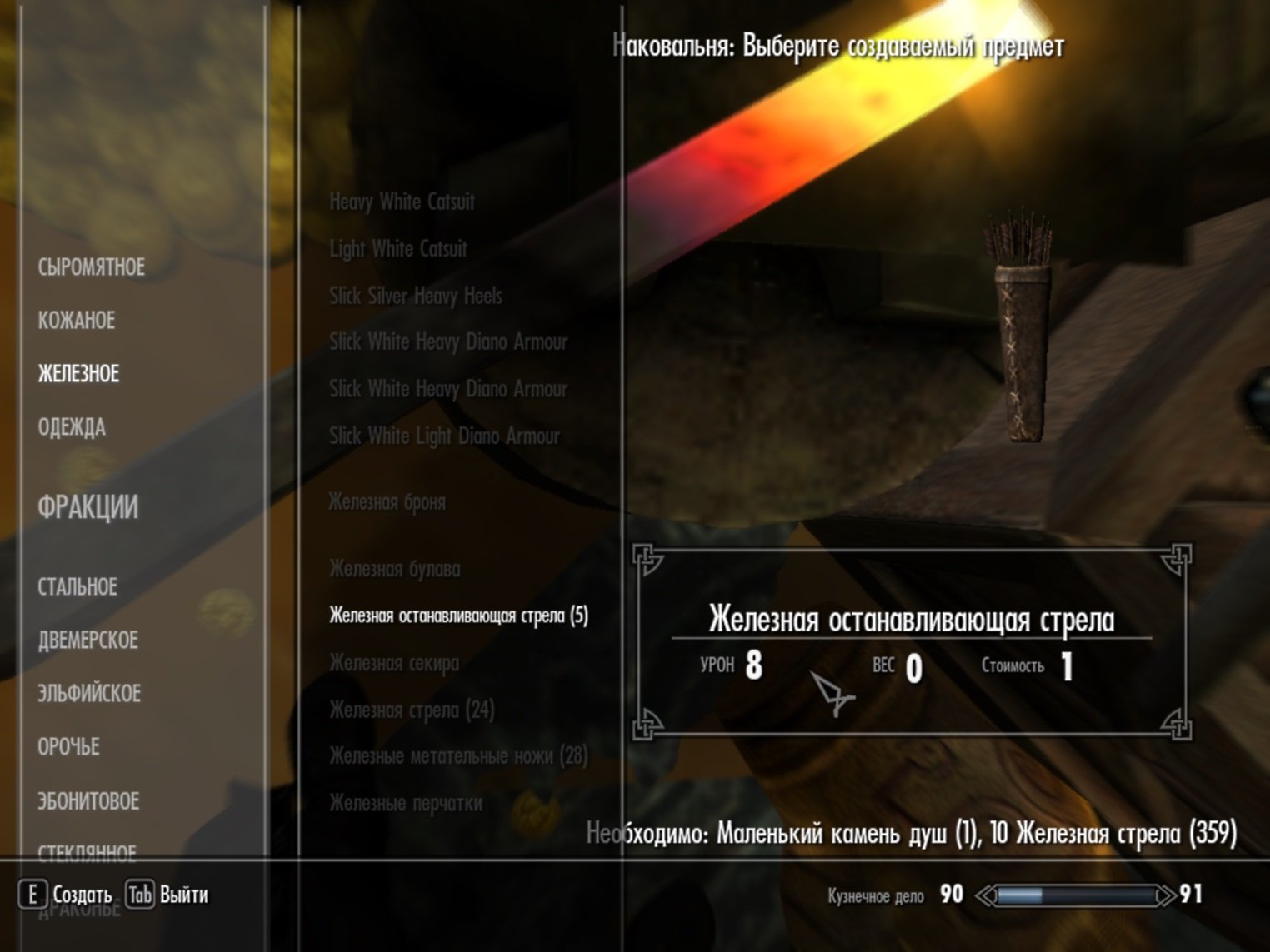 Все новые стрелы создаются в кузнице, в соответствующем разделе при наличии перка на соответствующий доспех.