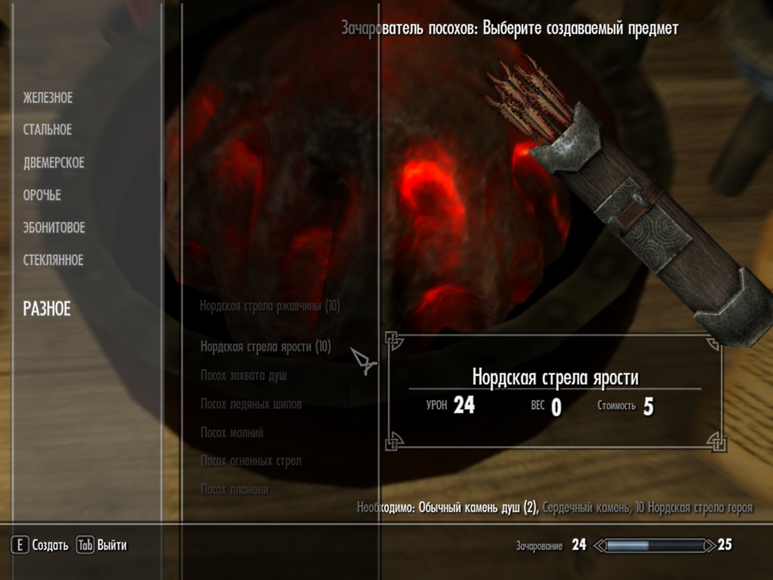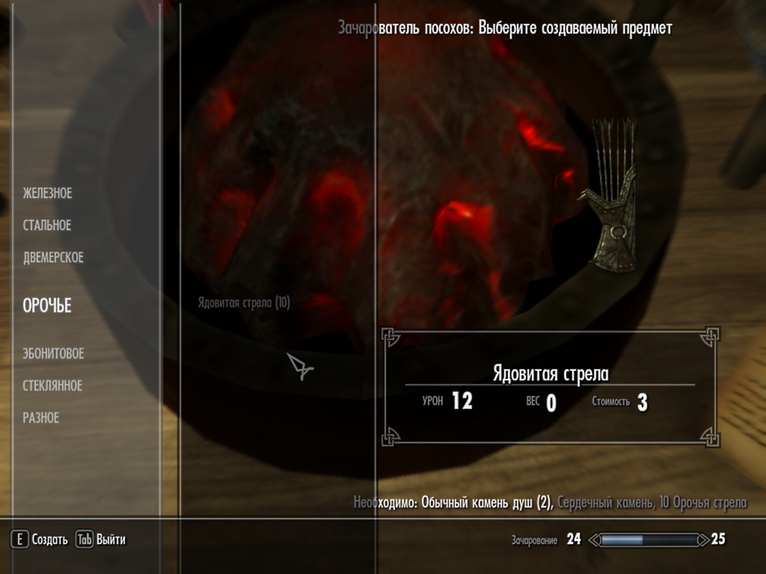 Все новые стрелы и болты создаются на любом Зачарователе посохов по единой схеме: 10 оригинальных снарядов + камень душ (полны) + сердечный камень