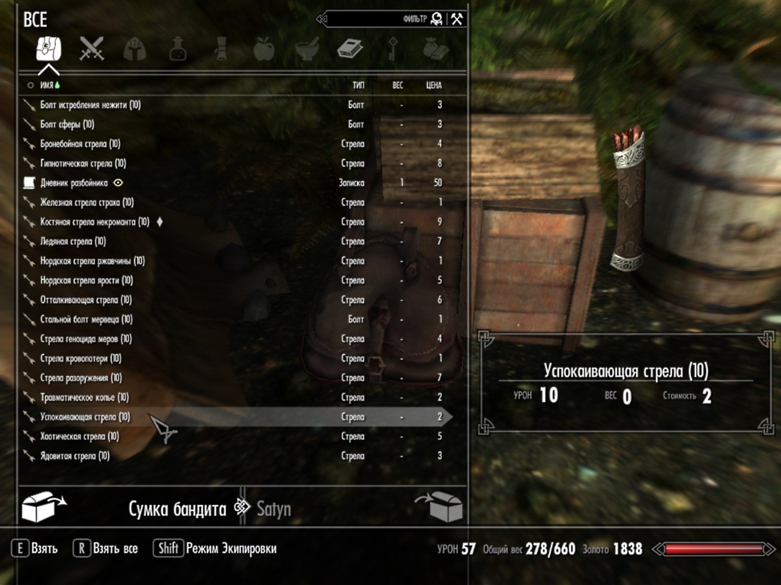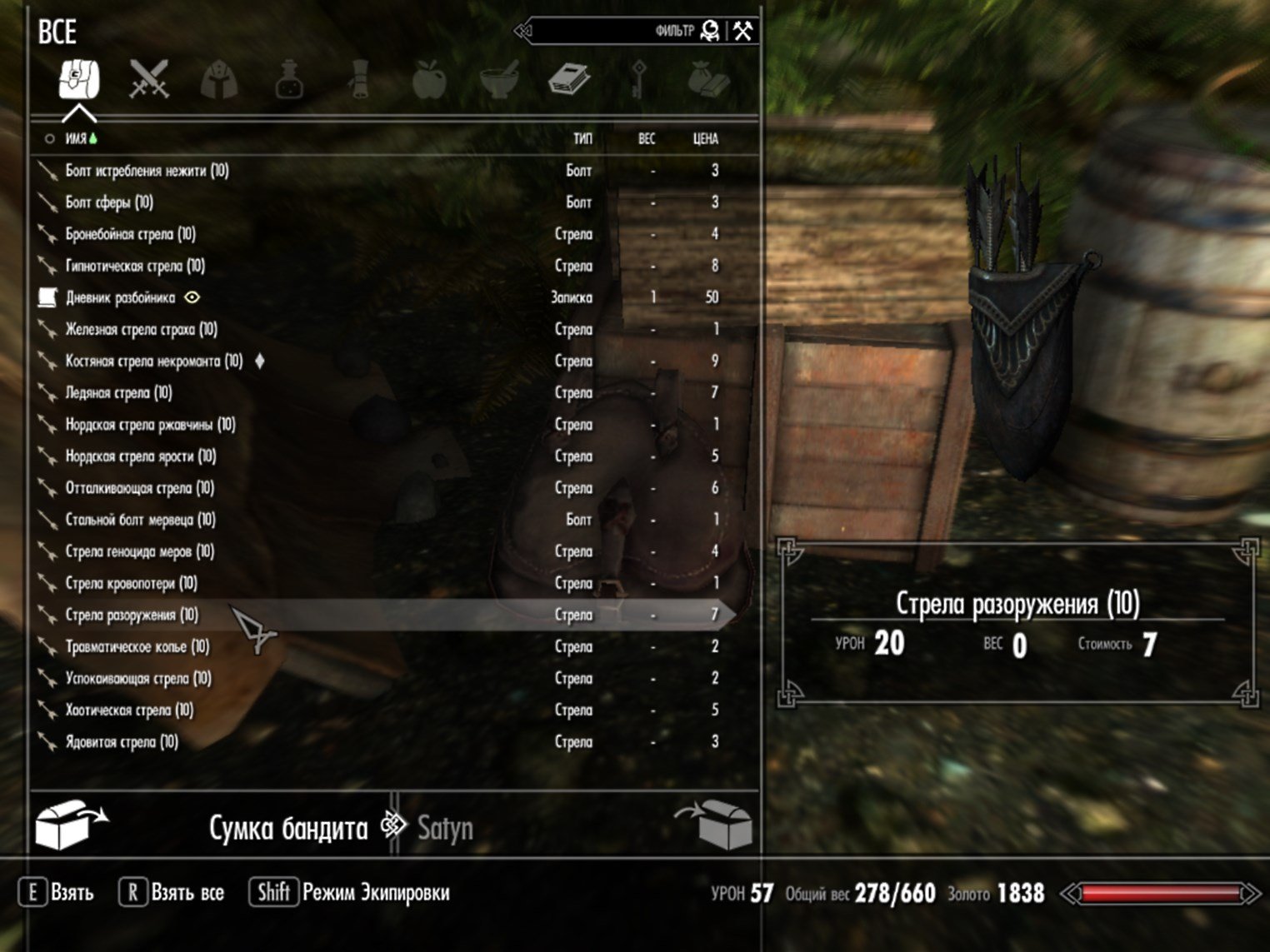 Каждая стрела обладает своим названием и зачарованием: отравление, отталкивание, урон Хаосом, гипноз, ярость, устрашение, заморозка, замедление, обезоруживание и конечно же Призыв!