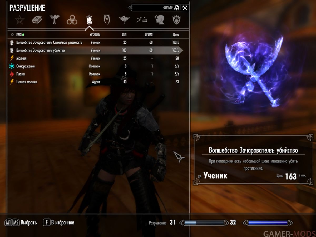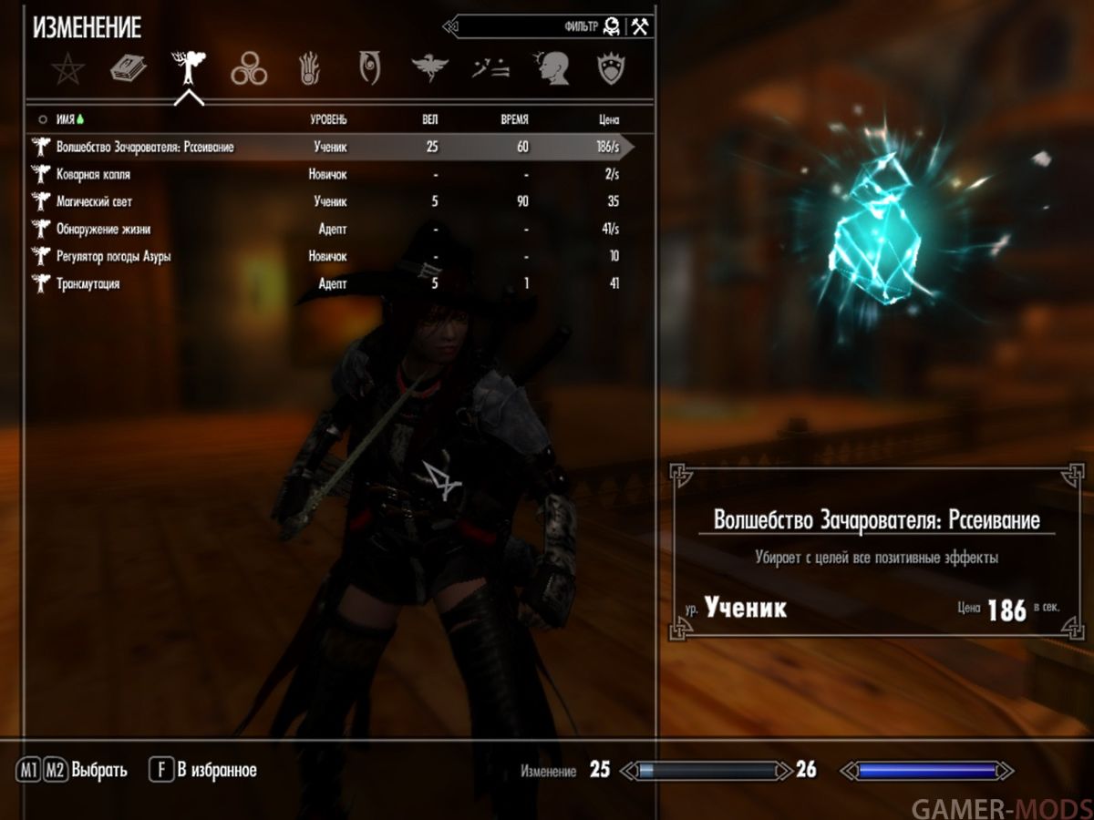 Мод представляет собой альтернативную механику Зачарования посредством использования 6 новых заклинаний Мага-зачарователя: по одному заклинанию из каждой Школы магии + одно на Мгновенное убийство.