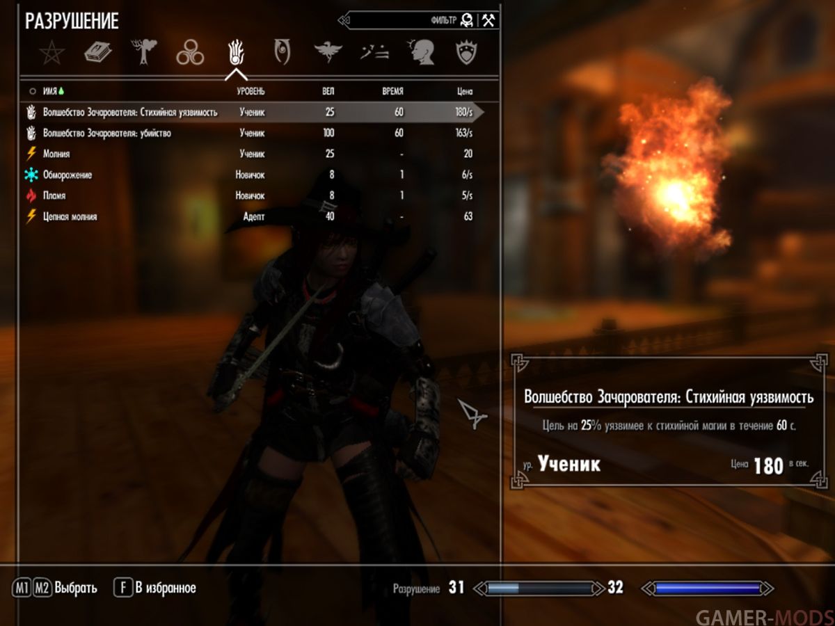 - Разрушение - увеличивает восприимчивость к магии Разрушения