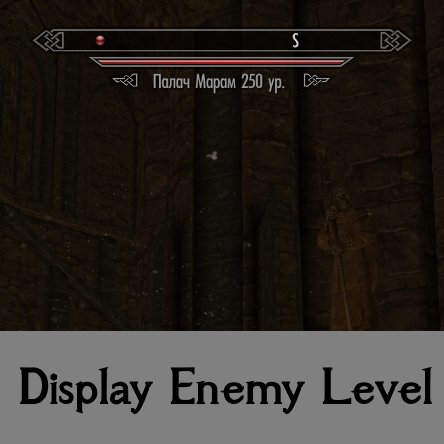 Данный мод добавляет к имени противника его уровень и кол-во очков здоровья во время боя. И делает он это, не используя HUD-меню (файл hudmenu.swf), поэтому совместим с Less Intrusive HUD II и подобными модами (я использую SkyHUD). Кроме того, вы можете выбрать цвет, который будет иметь надпись в зависимости от уровня противника.