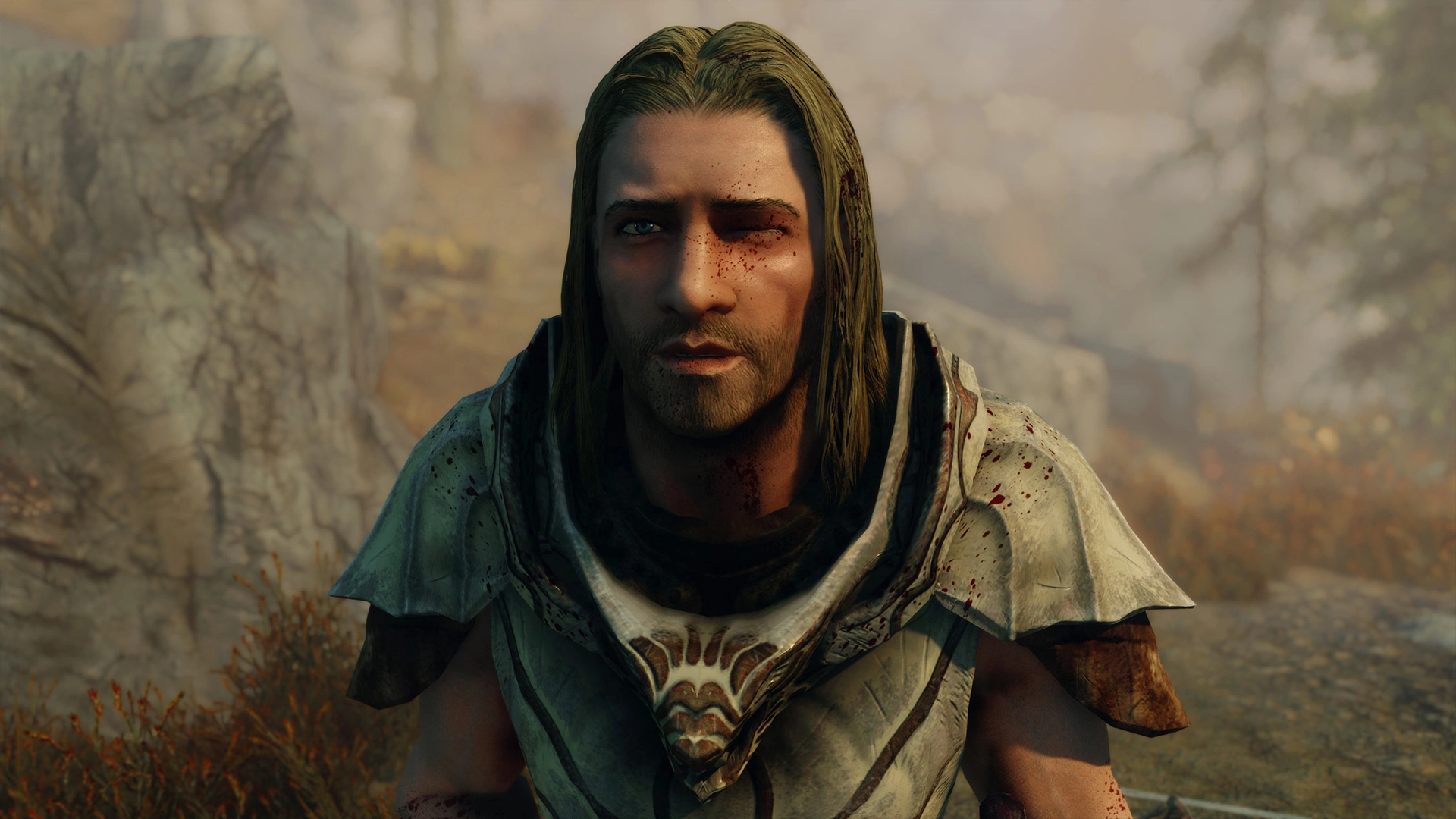 — Бездействие персонажа: логично, что эмоции и выражения лица проявляются при бездействии Довакина. Имеется 32 новых выражения лица. Подавляющее большинство из них весьма незаметные, дабы не отвлекать и не ломать игровой процесс. В основном служат для погружения и разнообразия личности вашего персонажа. Примеры: слегка хмурится, смотрит вправо, влево, улыбается, думает, смотрит вниз, зевает... Каждые 5-15 секунд имеется возможность проигрывания одной из таких «анимаций», которые длятся всего пару секунд.