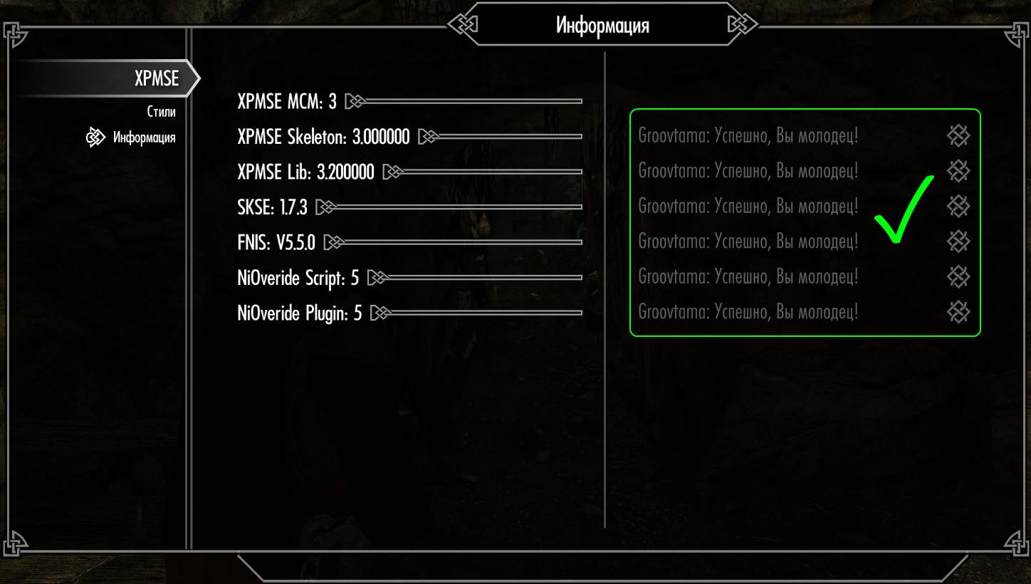 Также см. Установка XPMS+Immersive Animations+Dual Sheath Redux+FNIS (если вам нужна связка этих модов) и Руководство по установке модов.