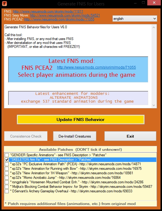 После установки запустить FNIS.