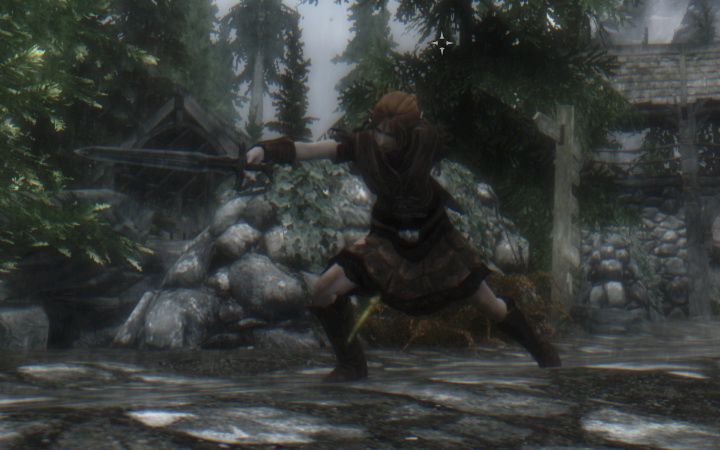 Мод переделывает анимацию силовой атаки вперед для одноручного оружия в выпад. Это распространяется и на дробящее оружие.