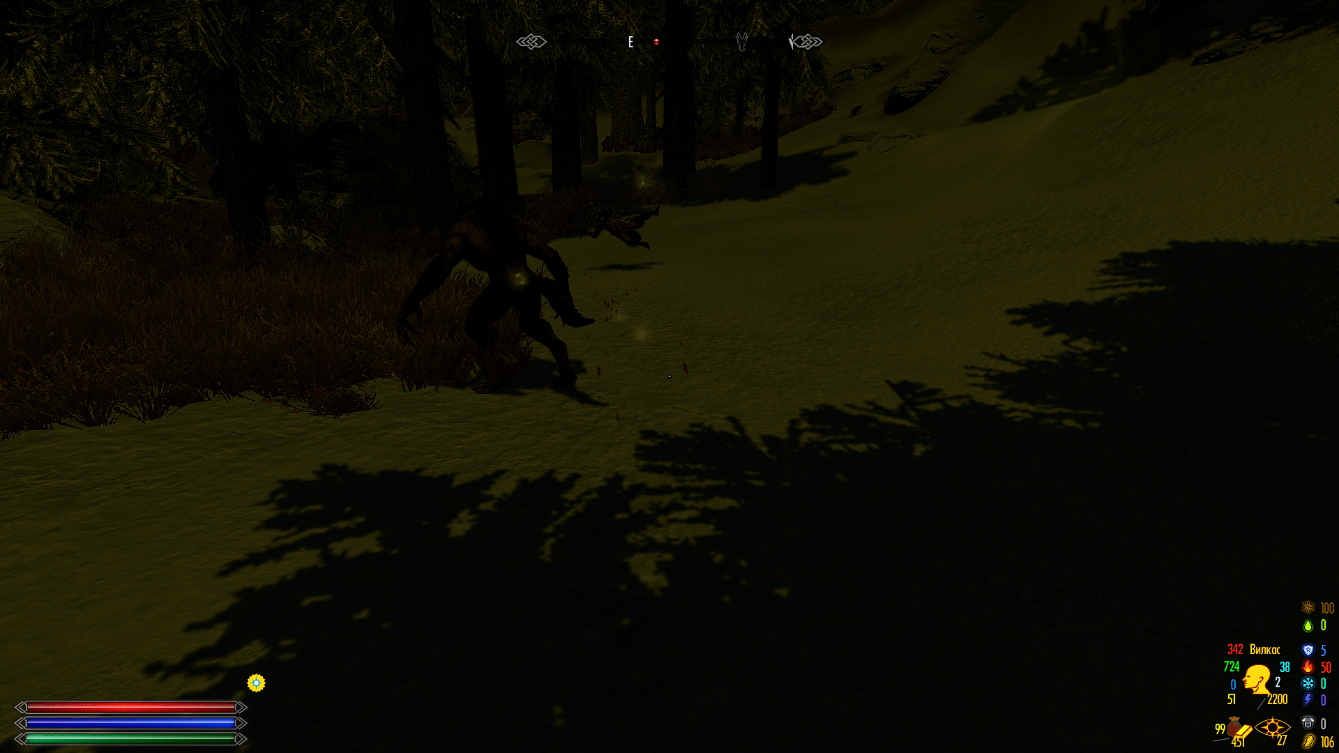 Во-вторых, я сделал так, что в момент трансформации все здоровье оборотня восстанавливается, а при трансформации никакая экипировка кроме оружия не снимается, т.е. все бонусы брони, колец и т.п. – остаются.