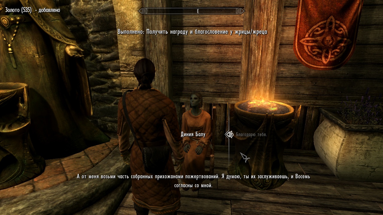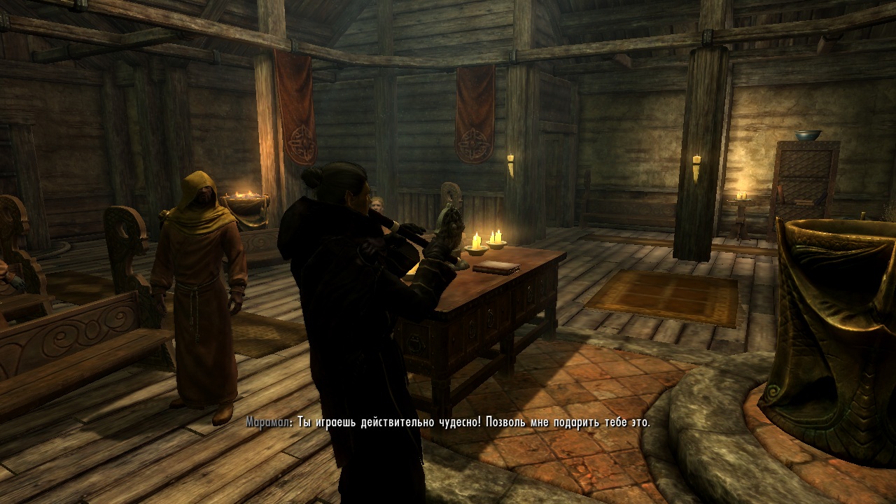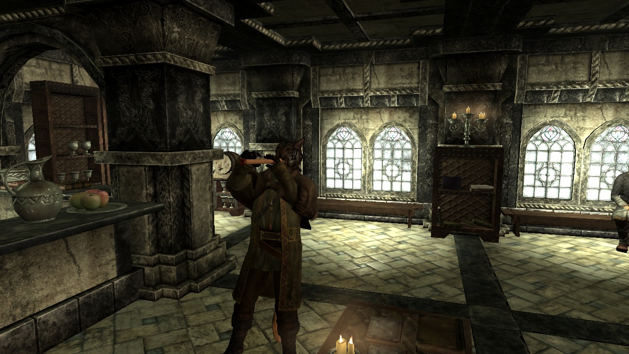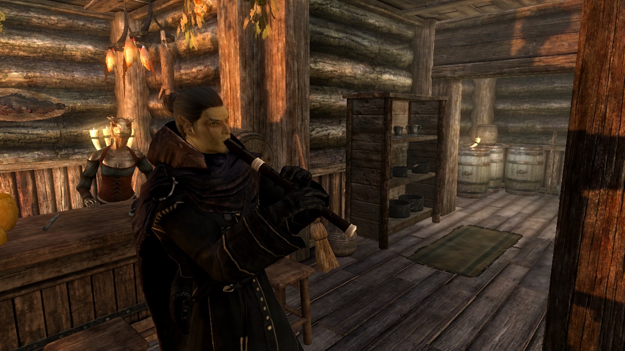 Отполировал квест на игру в таверне, в награду дается пока некая сумма денег в завиимости от Красноречия (артикуляция и дыхание важны в игре на флейте, как флейтист говорю); есть некоторые баги, правка в следующей версии. Могут подойти во время игры НПС и дать деньги, тоже в зависимости от Красноречия. Еще можно играть для (пока что) ярла Балгруфа.