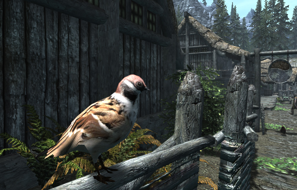 Воробей, буроголовая гаичка, большая синица: во многих местах Скайрима.