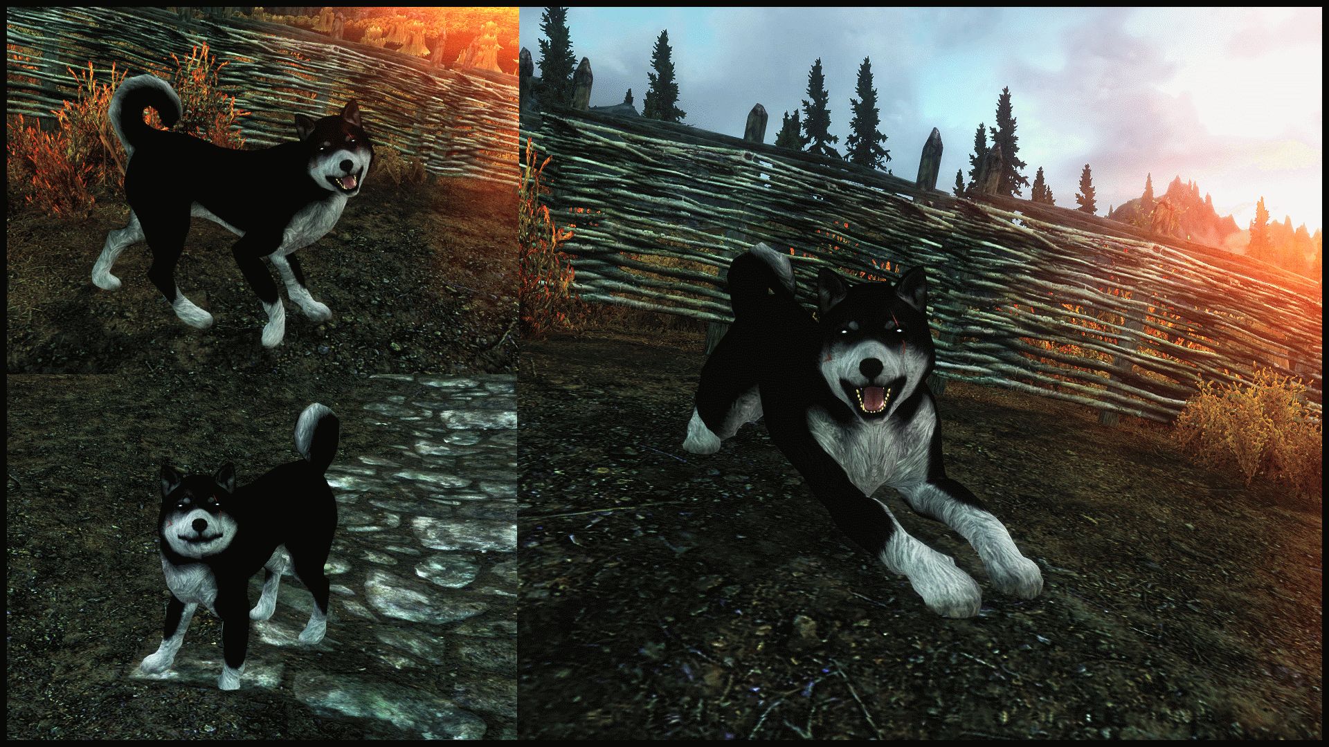 Великолепный мод, который добавит в Скайрим 16 кошек, 11 собак, 3 кролика и одного волка.У кошек насчитывается десять типов окраса, а у собак, которые отличаются еще и размером - четыре. Цель мода оживить Скайрим и сделать его интереснее, а не переселить кошками и собаками, а потому количество добавленных животных весьма умеренное.