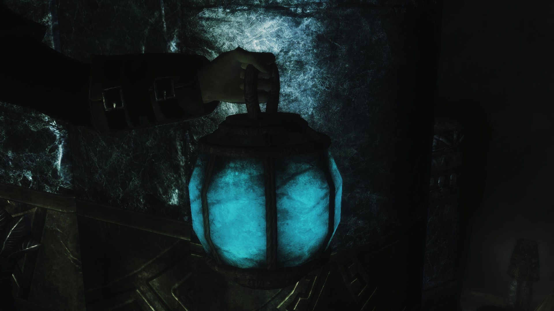 Простенький, но атмосферный мод, добавляющий возможность носить в левой руке (используя слот факела) Данмерский фонарь, в двух вариантах свечения и расцветки. Стандартном - оранжевом, и синем.