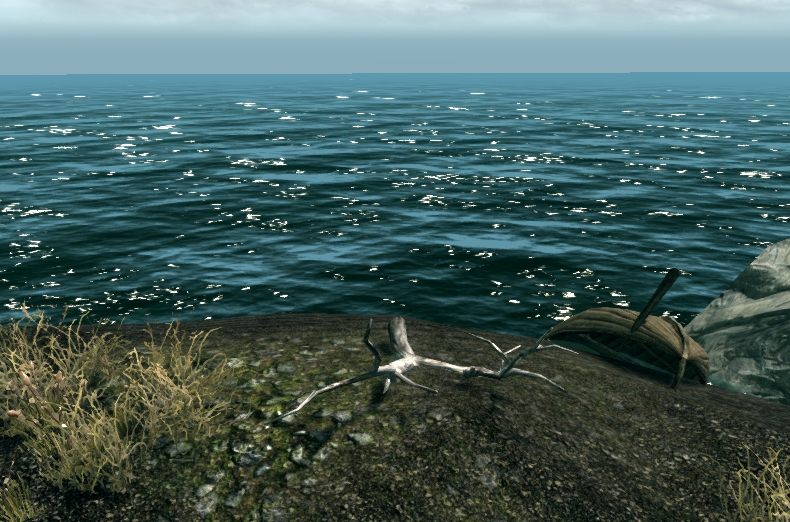 Сундуки, спрятанные на дне моря, обычно находятся не слишком далеко от берега, но их не так уж легко найти, так что если вы не ящерица - запаситесь зельями подводного дыхания. А вот затонуышие двемерские руины находятся далеко, и после нахождения их маркер появится на карте.
