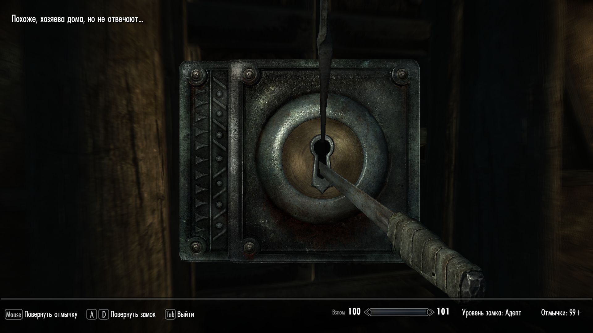 можно было бы развить идею и заставить жителей подойти к двери, что бы складывалось ощущение будто это они открыли замок. То есть, когда ГГ попадает в дом, перед ним стояли 1 или все обитатели жилища. Я не знаю как это сделать, но думаю, что опытному модмейкеру не составит труда поработать со скриптами)