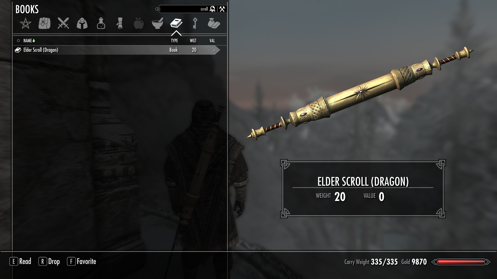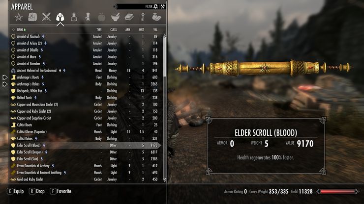 Никогда не задумывались, почему столь мощная древняя реликвия так бесполезна на практике? Даже Серана носит один, но по каким-то причинам вы не можете. Данный мод поправит сию несправедливость. Воспользуйтесь Древними свитками на практике. Носите и наслаждайтесь их внешним видом, а также магическими бонусами, которые они добавляют. Вы даже можете раздать свитки своим компаньонам! Если же Древние свитки вам наскучат, то вы всегда можете их продать.