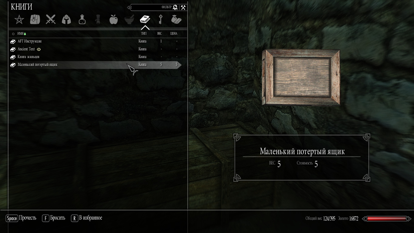 Некоторые предметы в игре отображаются в инвентаре в списке оружия и имеют вид свитков, которые можно брать в руку, как кинжал. Другие предметы отображаются в инвентаре в списке книг.