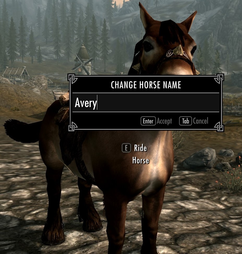 Этот небольшой мод позволит вам переименовать свою лошадь. Просто подойдите к ней, нажмите клавишу "U", введите новое имя, а затем отвернитесь на мгновение, чтобы имя лошади обновилось. В МКМ-меню вы сможете при желании выбрать другую клавишу для назначения имени.