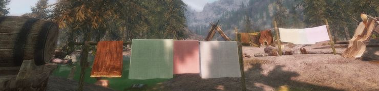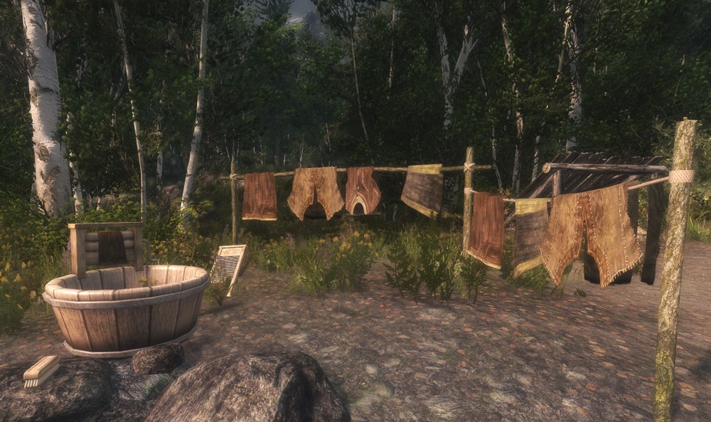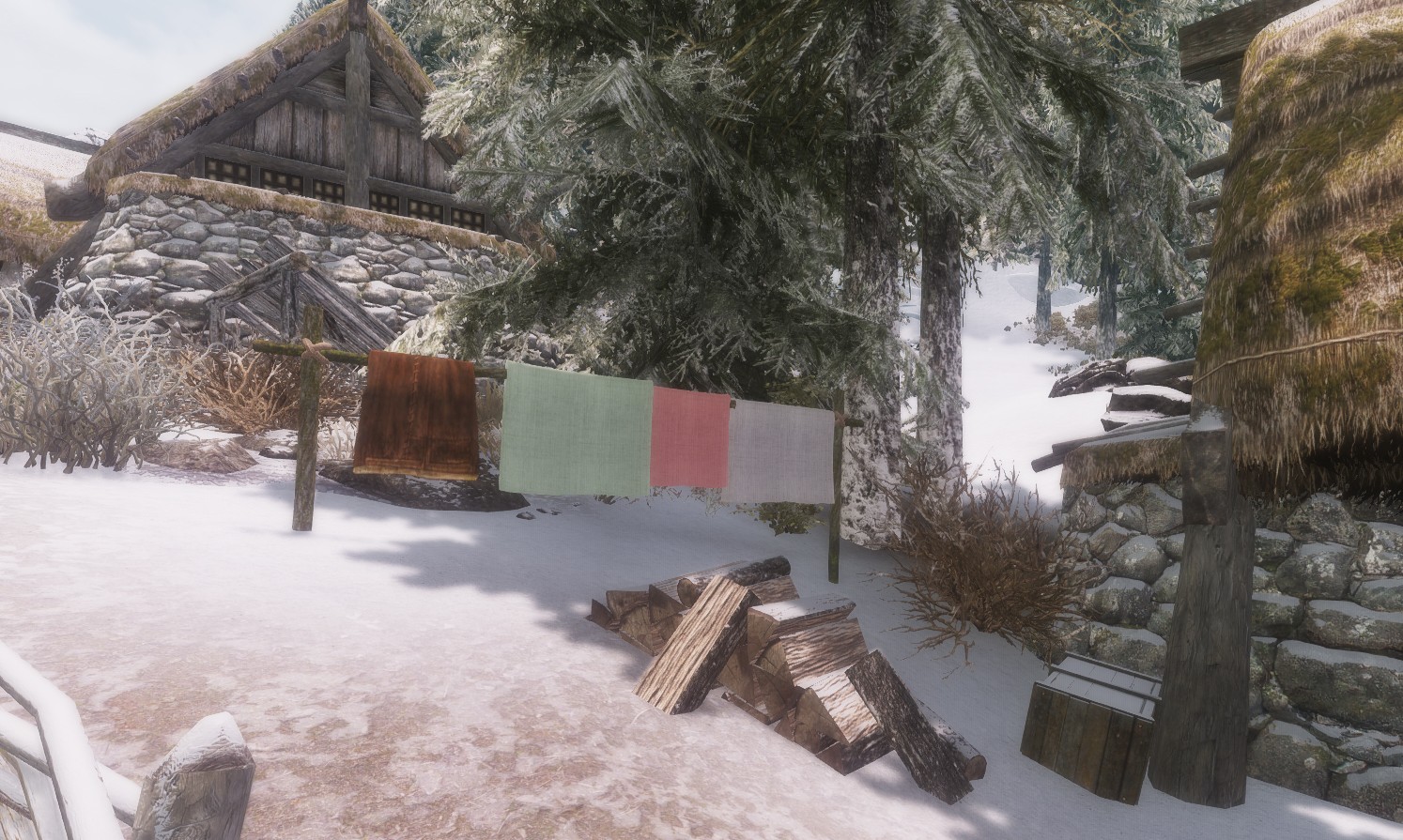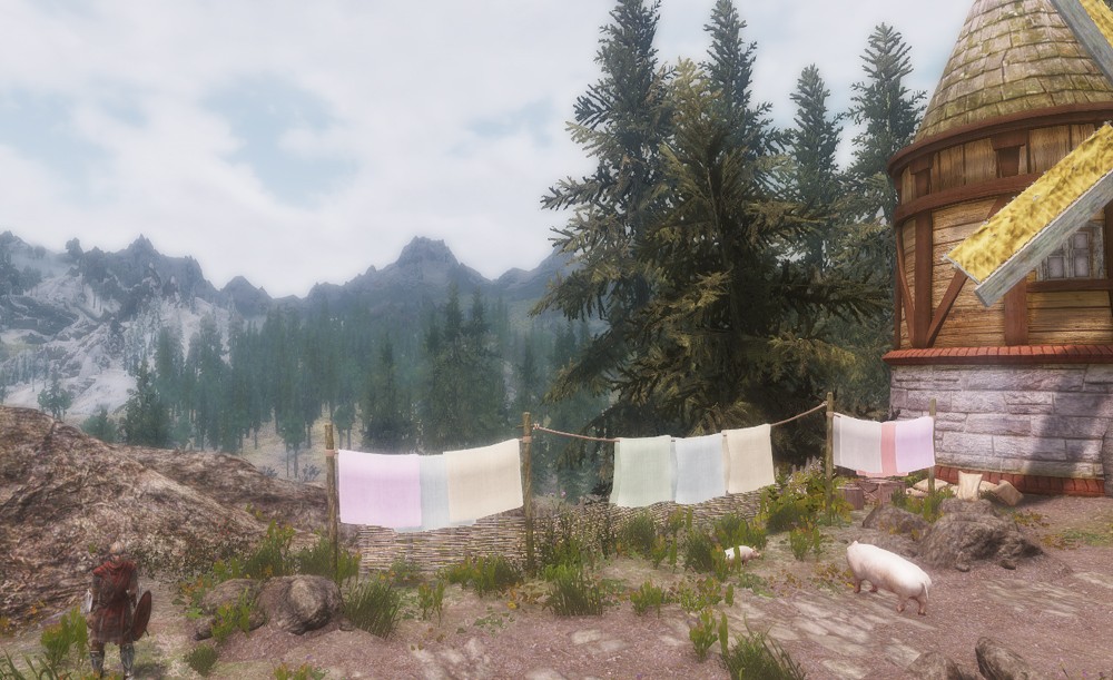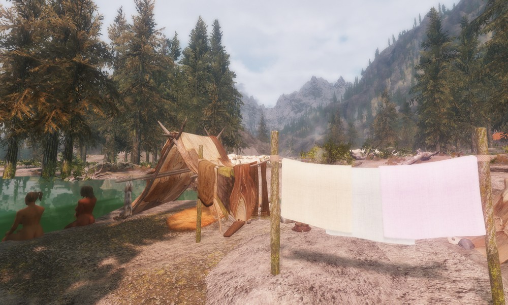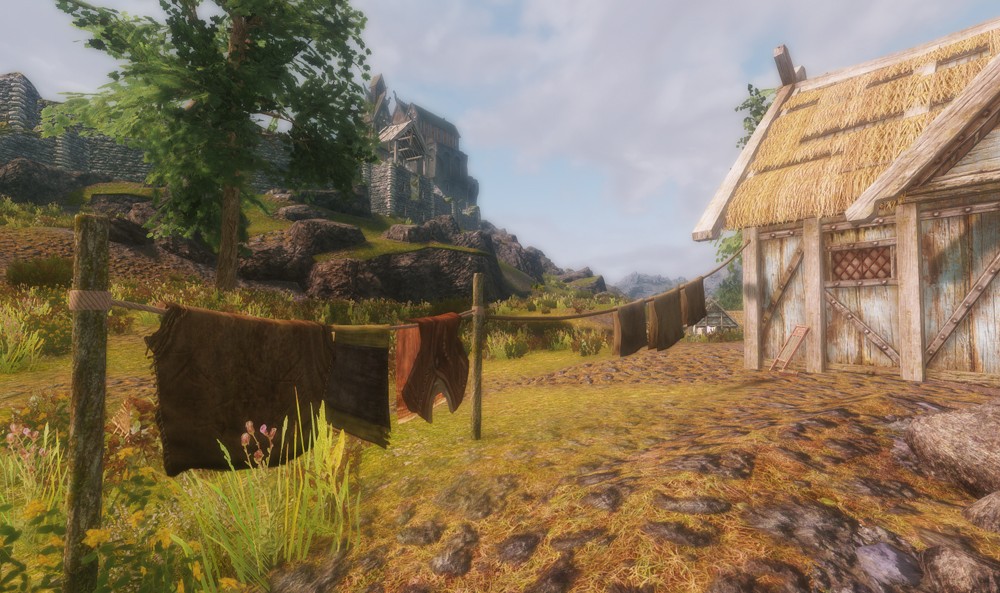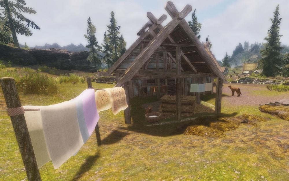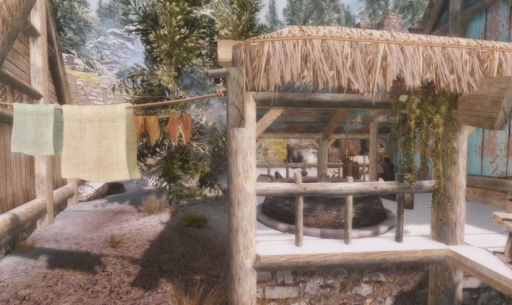 Данный мод добавляет во дворы скайримских обывателей щепотку их повседневной жизни в виде стираного белья, стиральных досок, щеток и тазиков с водой. Эти декоративные объекты размещены почти во всех цивилизованных областях провинции, у ферм и хижин, а иногда даже рядом с фортами.