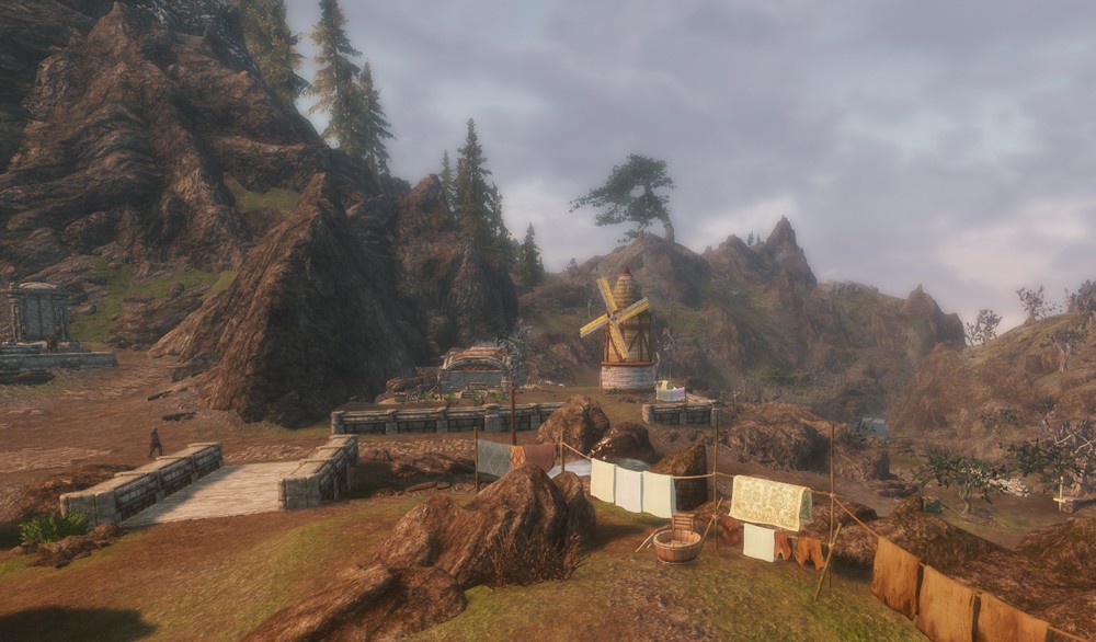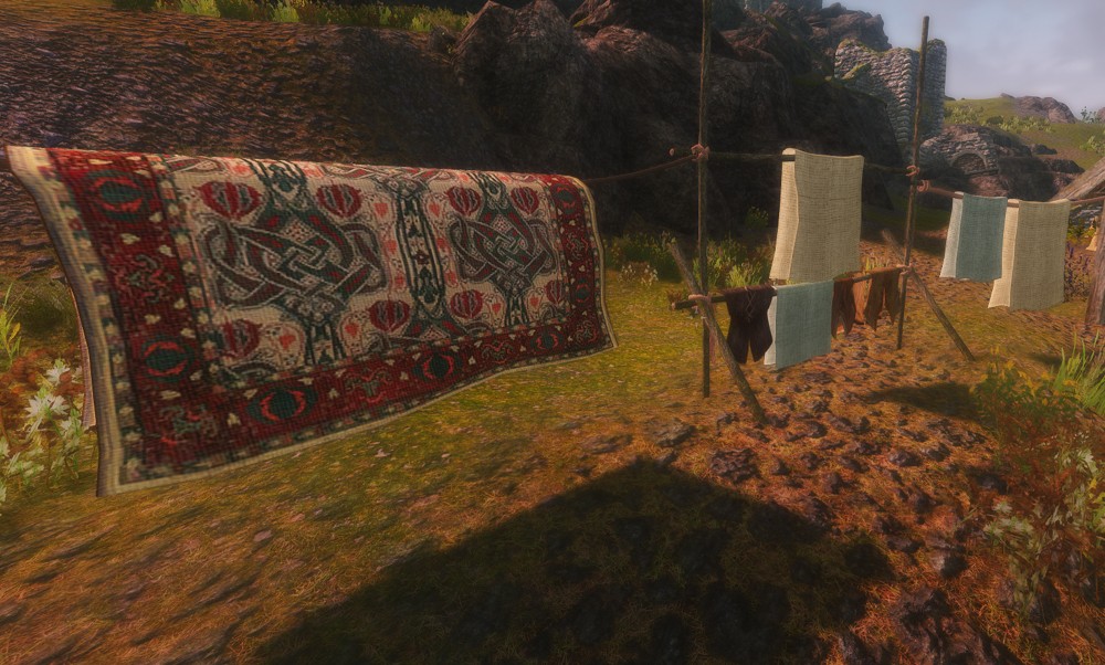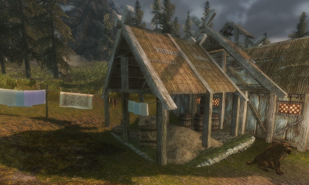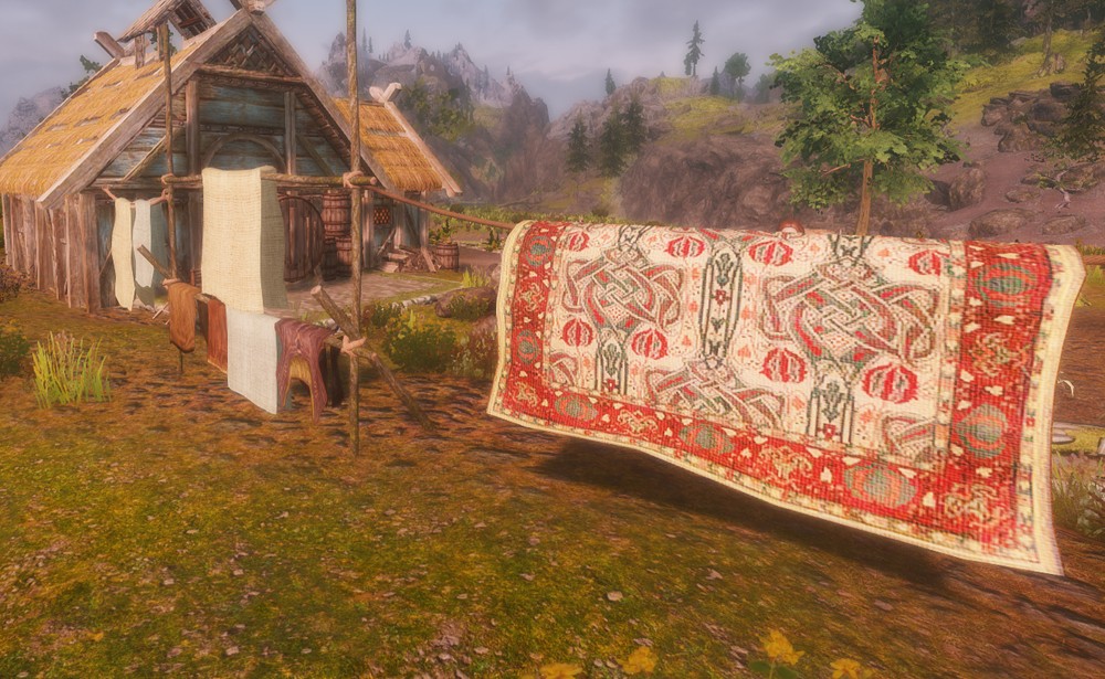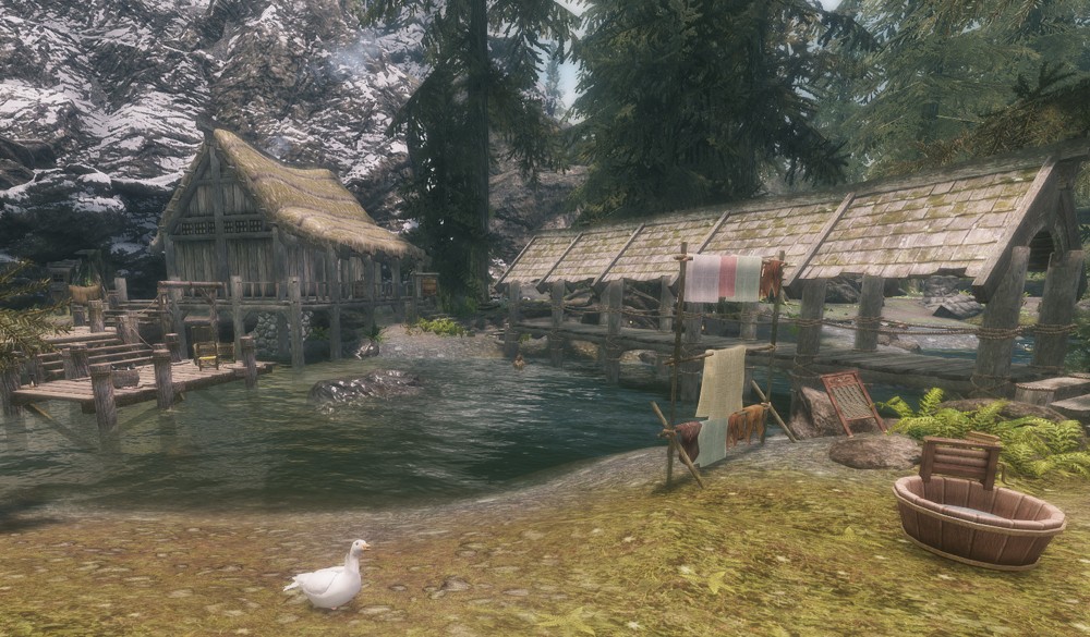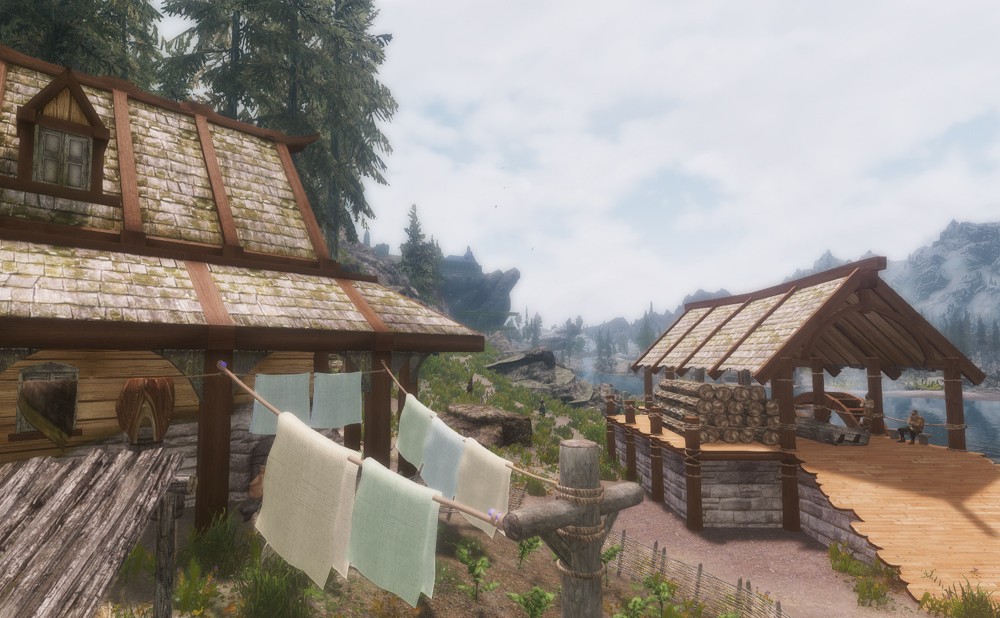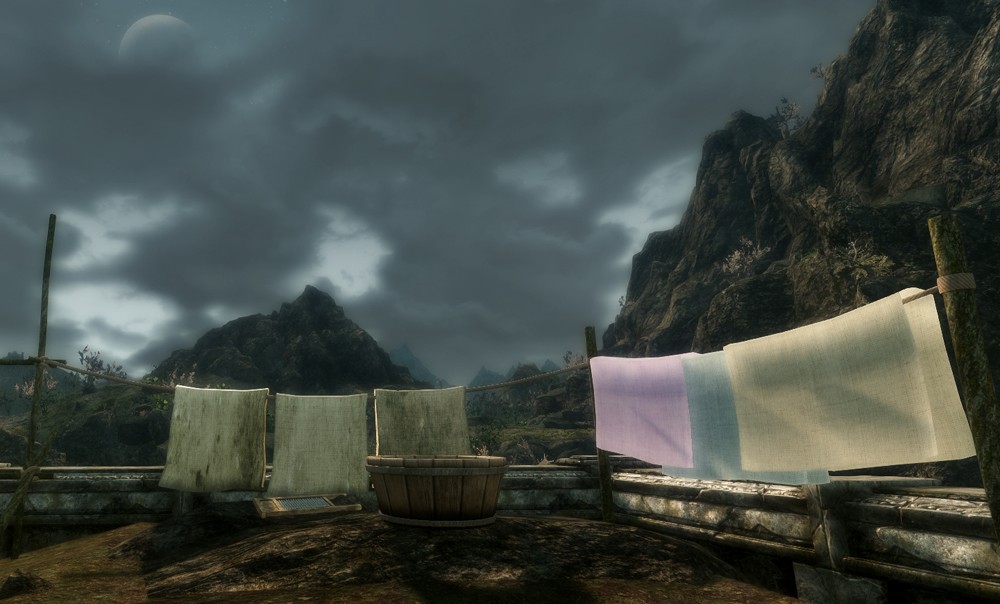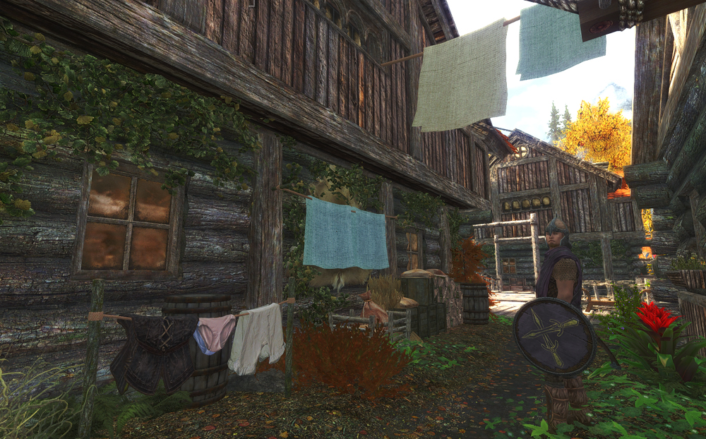 Данный мод добавляет во дворы скайримских обывателей щепотку их повседневной жизни в виде стираного белья, стиральных досок, щеток и тазиков с водой. Эти декоративные объекты размещены почти во всех цивилизованных областях провинции, у ферм и хижин, а иногда даже рядом с фортами.