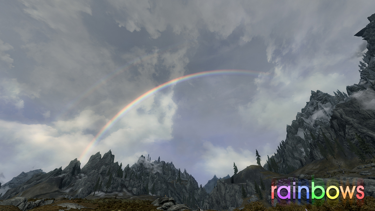 - Также радуга появляется из-за утренней росы (с 8:30 до 9:00) в теплых регионах Скайрима. Данная радуга более блеклая.