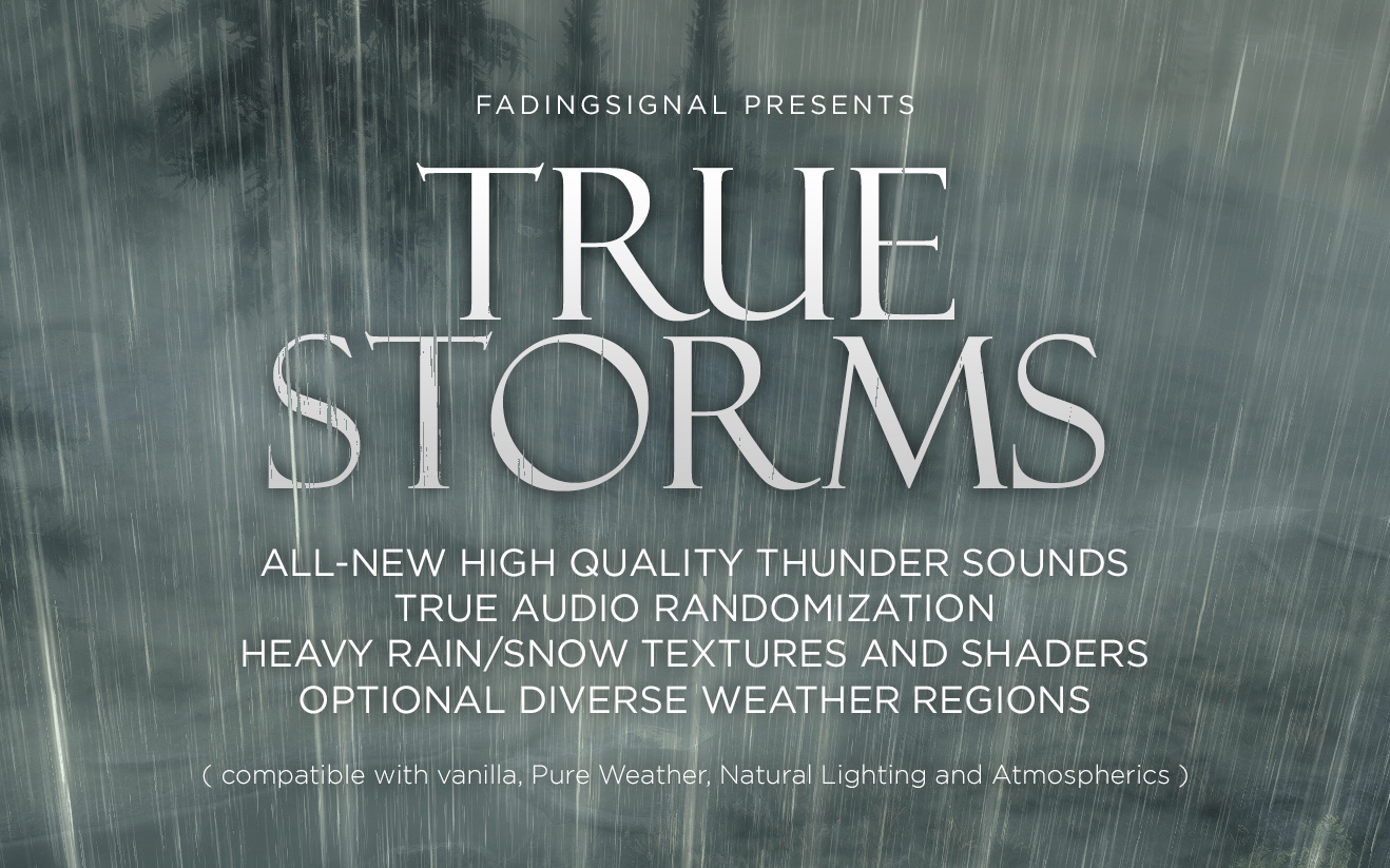 Если вы ДЕЙСТВИТЕЛЬНО хотите использовать данный мод с каким-либо погодным модом без патча, то просто поместите True Storm после погодного мода в порядке загрузки. Будут заменены цвета/освещение для дождливой погоды.