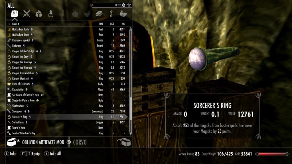 Мод добавляет множество артефактов из Obliviona в Skyrim. Оружие и броня находятся в разных местах. Под спойлером более подробное указание локаций с добавленными предметами.