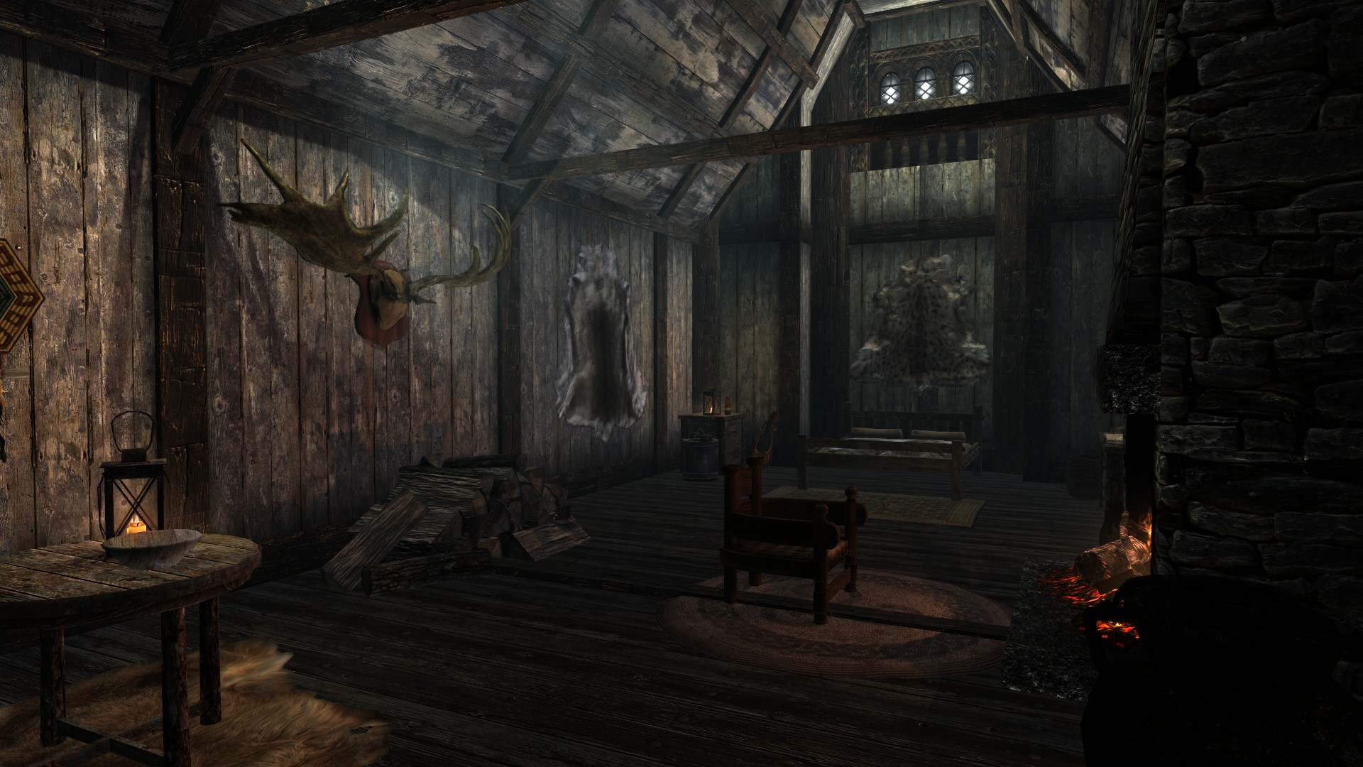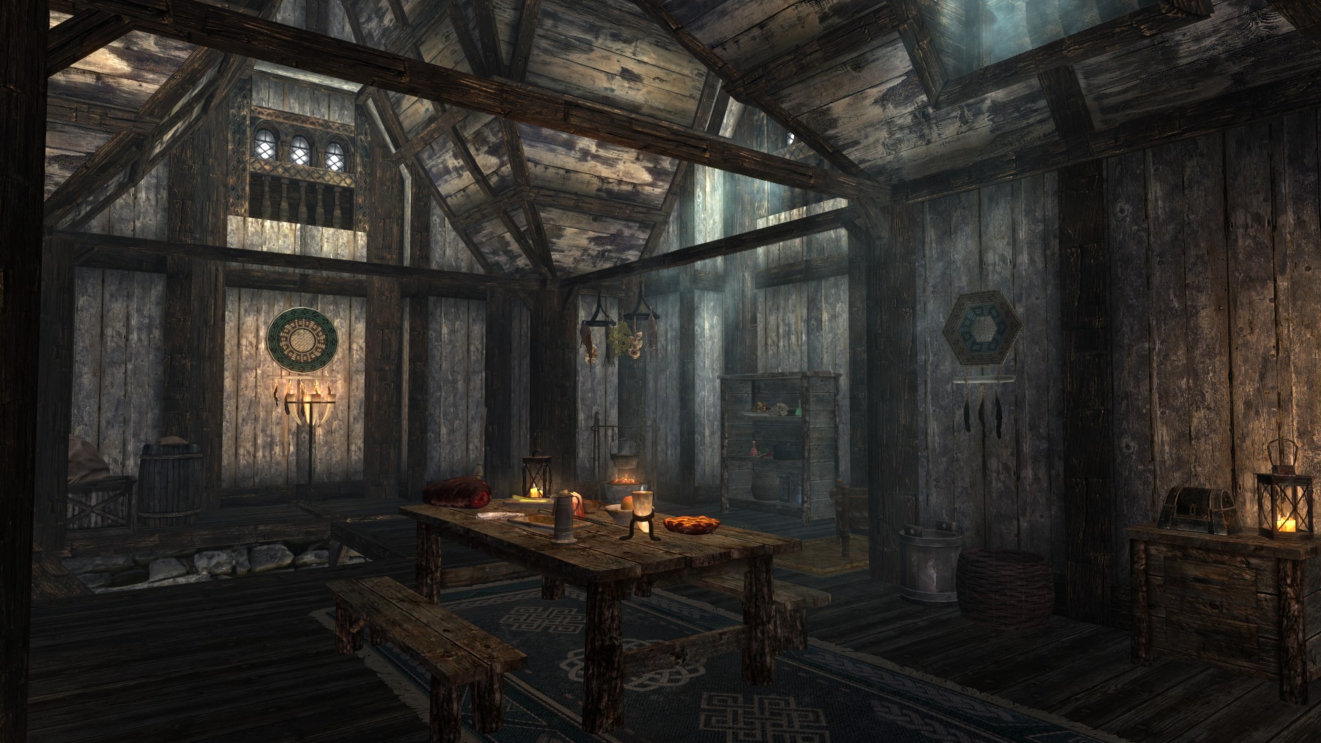Изменений, что я сделал, всего несколько, их можно разделить на две группы: изменения "склада" и остальные изменения. Склад, находящийся прямо за дверным проходом, что находится за "барной стойкой", был поделён на две части: маленькая каморка, где теперь стоят ящики и бочки (также, туда переехала кровать Квинта Навалома), и лаборатория, где теперь стоит алхимическая станция. К общим изменениям можно отнести: починка и устранение всех дырок в полу и стенах, размещение дополнительных источников освещения и "столбов пыли", устранение архитектурной несостыковки на первом этаже (наличие пары окон на углу здания, хоть снаружи есть только одно окно), а также небольшая перестановка мебели.