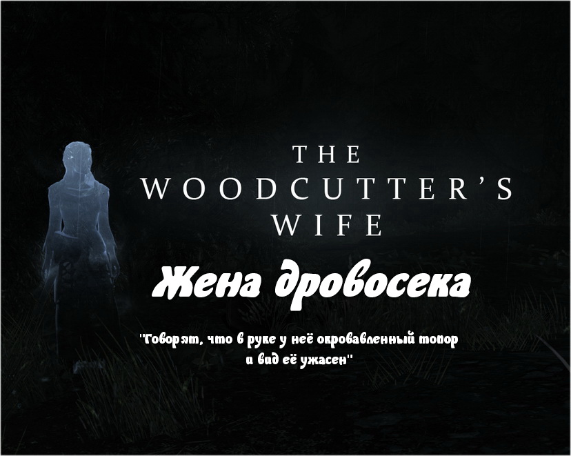 "И до сих пор странствующие поздно ночью по сосновому лесу рассказывают, что видели меж деревьев плачущую женщину. Говорят, что в руке у неё окровавленный топор и вид её ужасен".